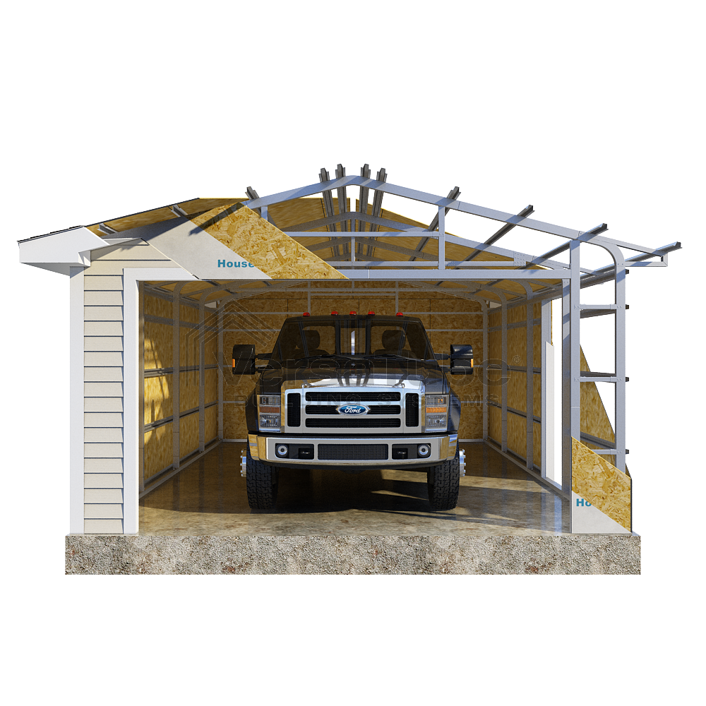 The required side girt components in the Summit design result in a more substantial building frame and allow for the use of plywood or OSB for vinyl or other siding products. And assembly time is drastically reduced with our patented Slip-Fit frame connections.