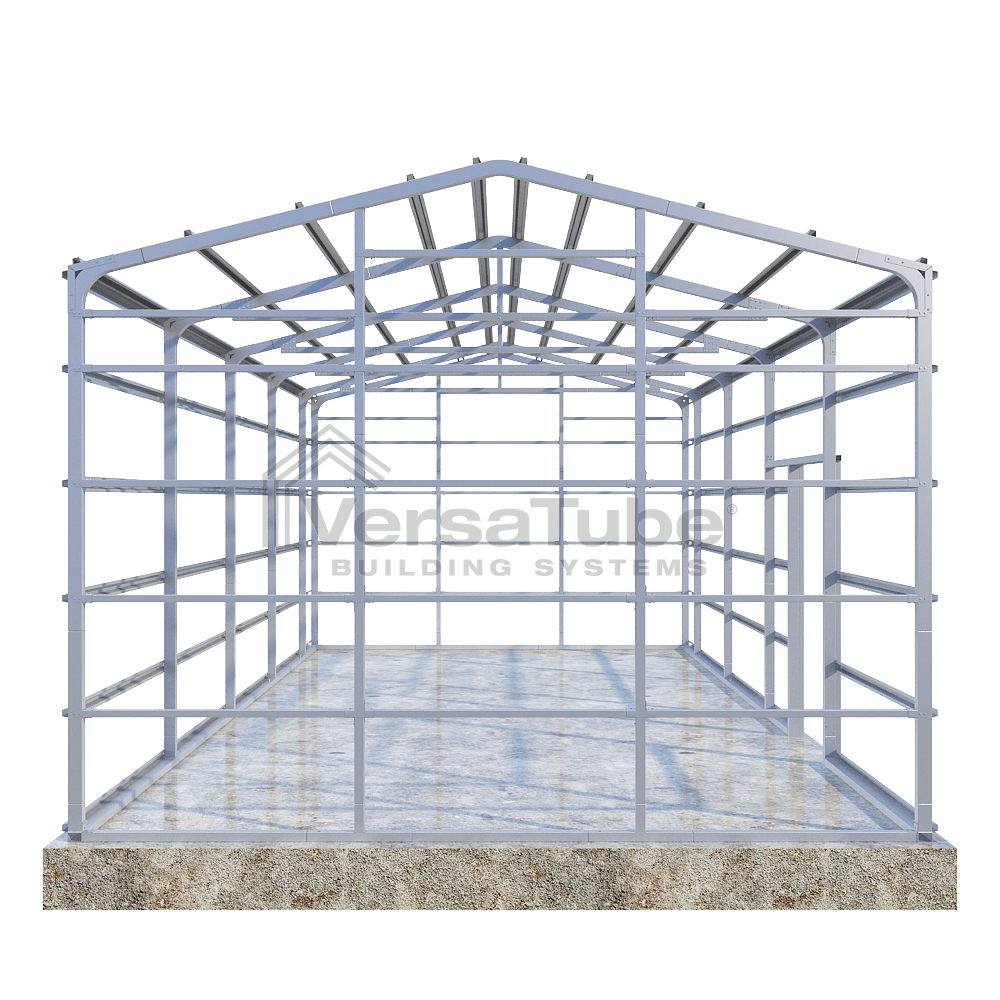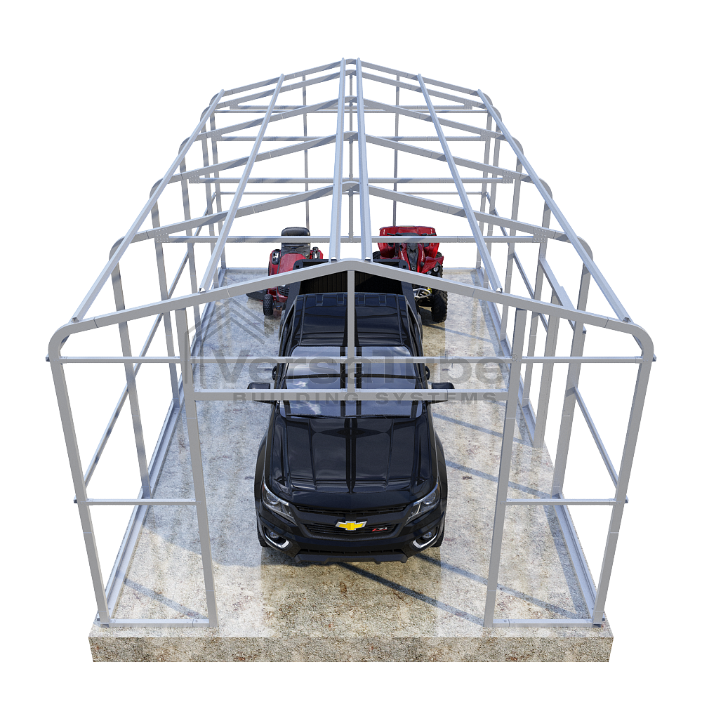 Additional interior truss bracing and 26 gauge sheet metal are available options if you are building in a higher snow load and/or wind load area and local code requirements must be achieved. Call a VersaTube Product Specialist 1-800-810-2993 with your load requirements and questions.