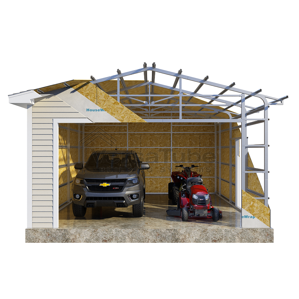 Additional interior truss bracing and 26 gauge sheet metal are available options if you are building in a higher snow load and/or wind load area and local code requirements must be achieved. Call a VersaTube Product Specialist 1-800-810-2993 with your load requirements and questions.
