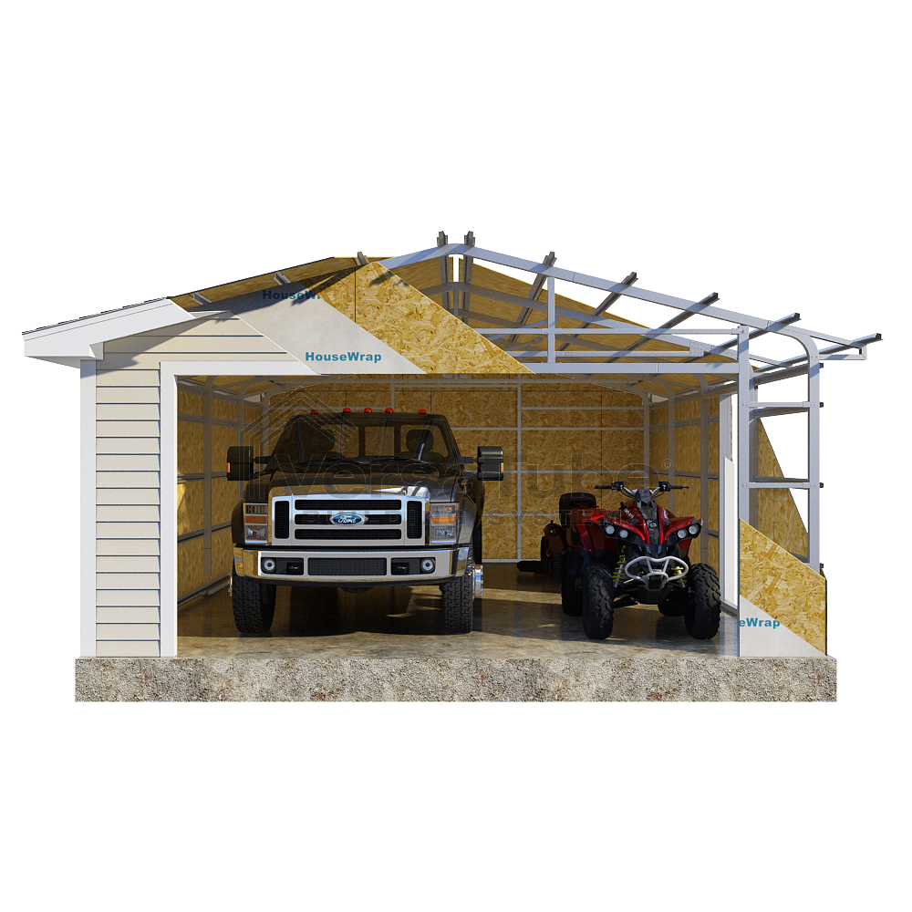 The required side girt components in the Summit design result in a more substantial building frame and allow for the use of plywood or OSB for vinyl or other siding products. And assembly time is drastically reduced with our patented Slip-Fit frame connections.