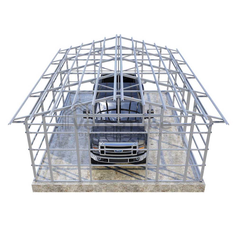 Additional interior truss bracing and 26 gauge sheet metal are available options if you are building in a higher snow load and/or wind load area and local code requirements must be achieved. Call a VersaTube Product Specialist 1-800-810-2993 with your load requirements and questions.