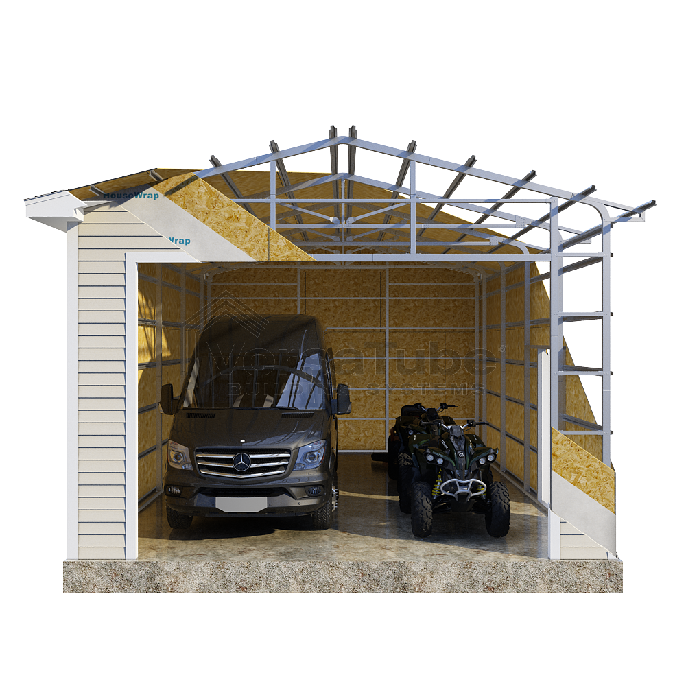 The required side girt components in the Summit design result in a more substantial building frame and allow for the use of plywood or OSB for vinyl or other siding products. And assembly time is drastically reduced with our patented Slip-Fit frame connections.