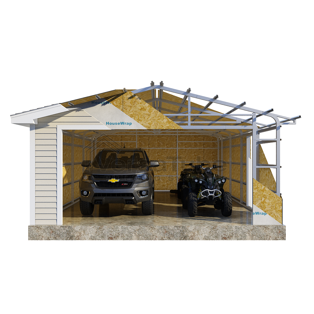 The required side girt components in the Summit design result in a more substantial building frame and allow for the use of plywood or OSB for vinyl or other siding products. And assembly time is drastically reduced with our patented Slip-Fit frame connections.
