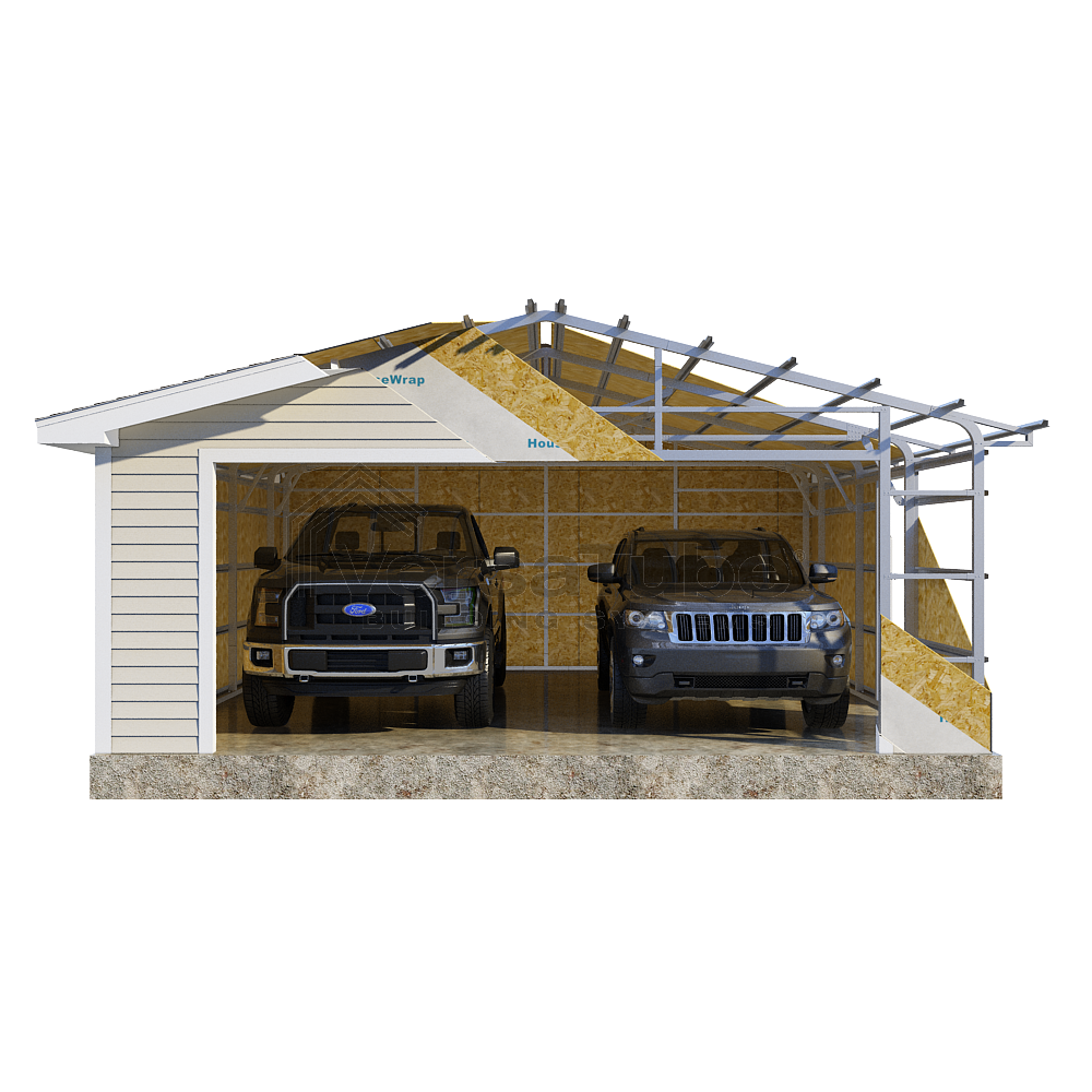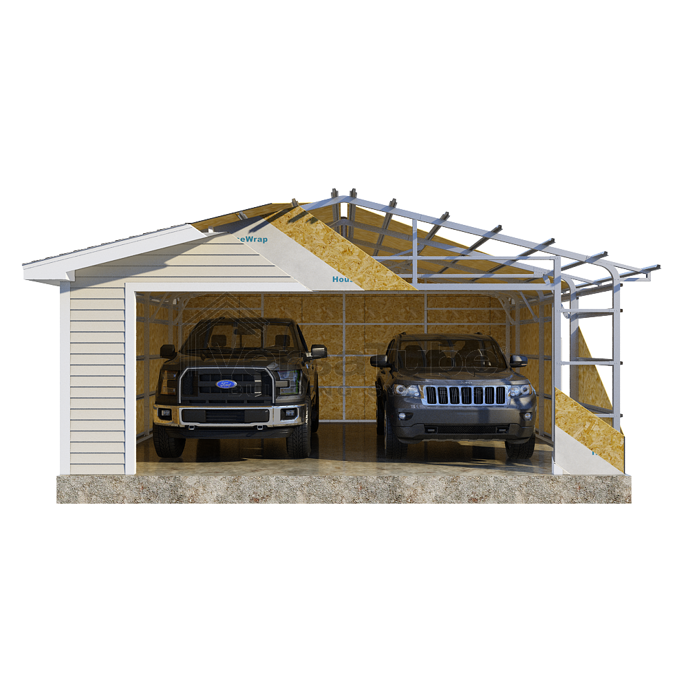 The required side girt components in the Summit design result in a more substantial building frame and allow for the use of plywood or OSB for vinyl or other siding products. And assembly time is drastically reduced with our patented Slip-Fit frame connections.