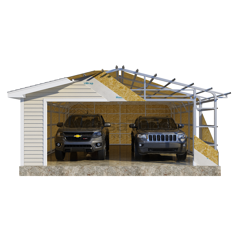 The required side girt components in the Summit design result in a more substantial building frame and allow for the use of plywood or OSB for vinyl or other siding products. And assembly time is drastically reduced with our patented Slip-Fit frame connections.