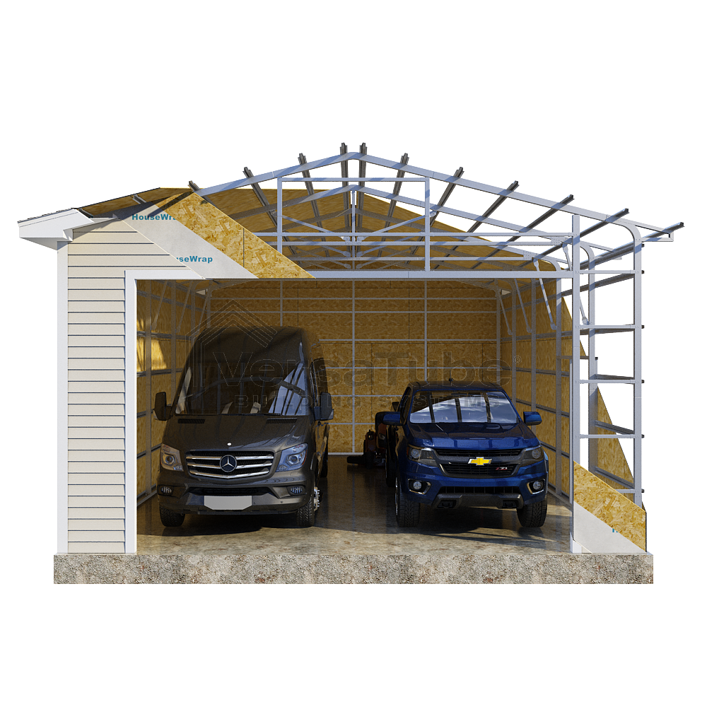 The required side girt components in the Summit design result in a more substantial building frame and allow for the use of plywood or OSB for vinyl or other siding products. And assembly time is drastically reduced with our patented Slip-Fit frame connections.