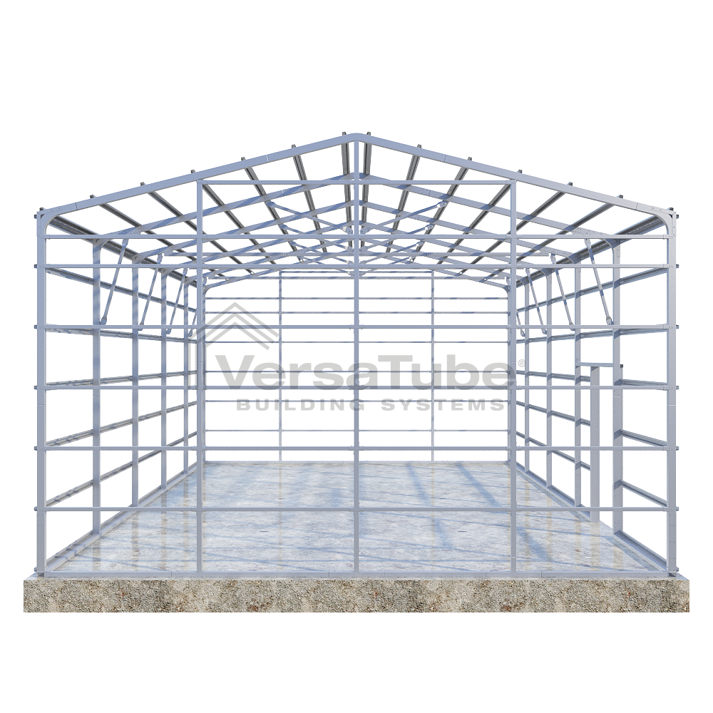 Additional interior truss bracing and 26 gauge sheet metal are available options if you are building in a higher snow load and/or wind load area and local code requirements must be achieved. Call a VersaTube Product Specialist 1-800-810-2993 with your load requirements and questions.