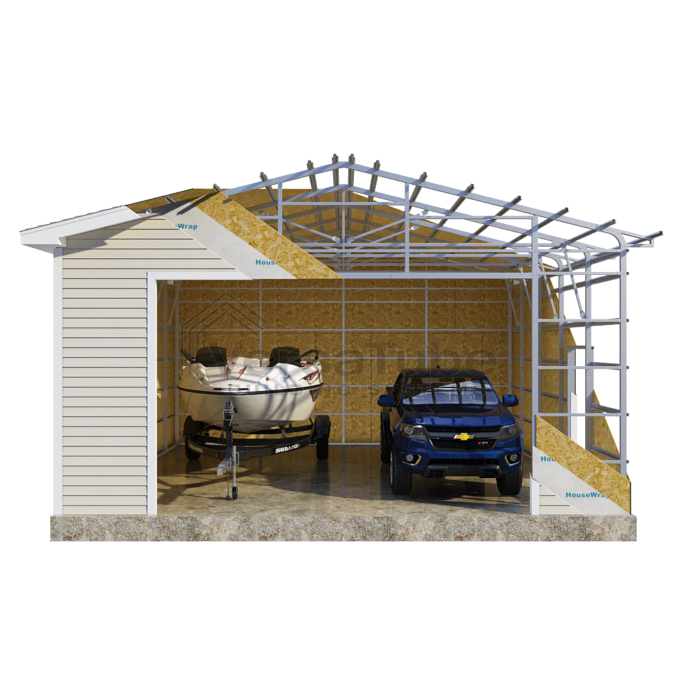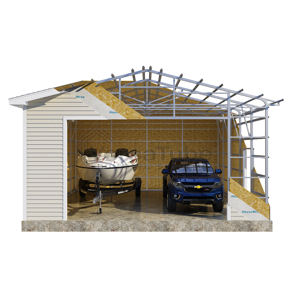 The required side girt components in the Summit design result in a more substantial building frame and allow for the use of plywood or OSB for vinyl or other siding products. And assembly time is drastically reduced with our patented Slip-Fit frame connections.