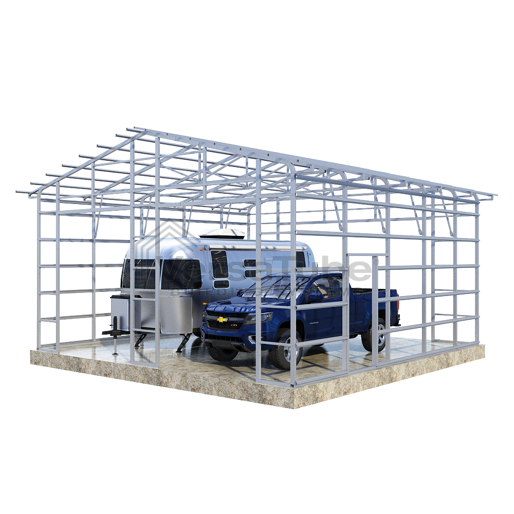 Ground anchoring requires VersaTube rebar anchors centered in post holes and backfilled with concrete. Anchoring to a concrete slab or concrete footing requires concrete wedge anchor bolts. Anchors are provided with each building and carport kit. You will make your selection prior to checkout.