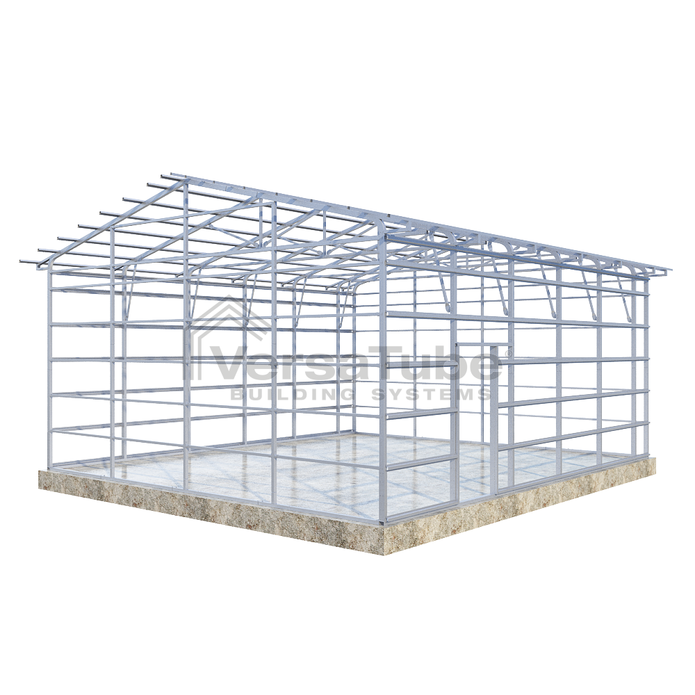 Additional interior truss bracing and 26 gauge sheet metal are available options if you are building in a higher snow load and/or wind load area and local code requirements must be achieved. Call a VersaTube Product Specialist 1-800-810-2993 with your load requirements and questions.