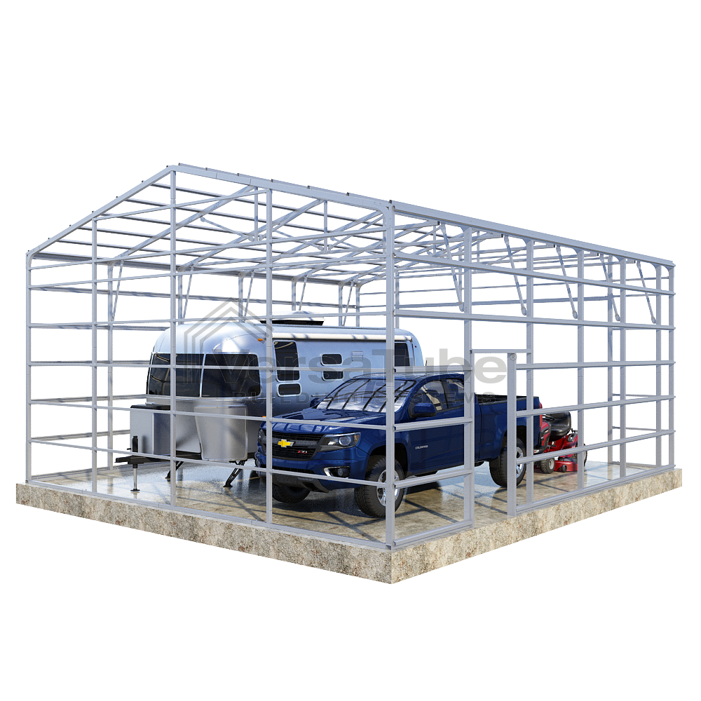 Ground anchoring requires VersaTube rebar anchors centered in post holes and backfilled with concrete. Anchoring to a concrete slab or concrete footing requires concrete wedge anchor bolts. Anchors are provided with each building and carport kit. You will make your selection prior to checkout.