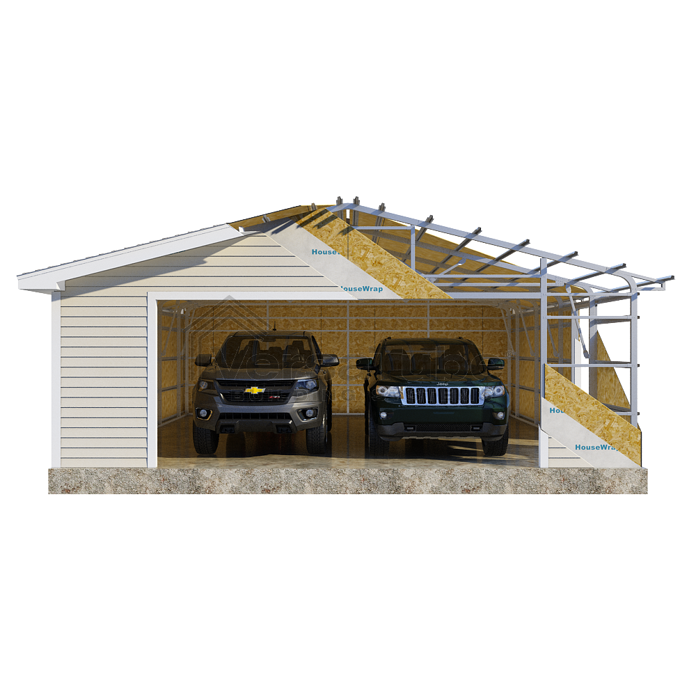 The required side girt components in the Summit design result in a more substantial building frame and allow for the use of plywood or OSB for vinyl or other siding products. And assembly time is drastically reduced with our patented Slip-Fit frame connections.