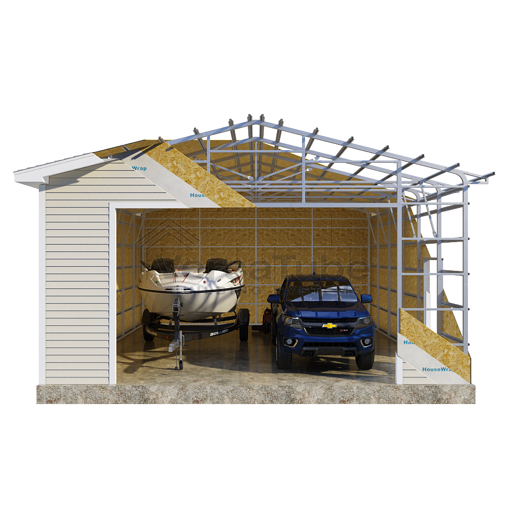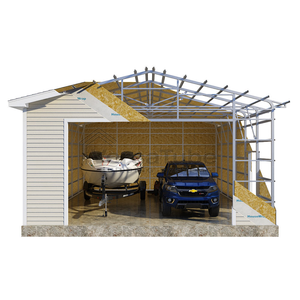 The required side girt components in the Summit design result in a more substantial building frame and allow for the use of plywood or OSB for vinyl or other siding products. And assembly time is drastically reduced with our patented Slip-Fit frame connections.