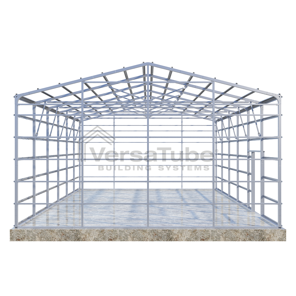 Additional interior truss bracing and 26 gauge sheet metal are available options if you are building in a higher snow load and/or wind load area and local code requirements must be achieved. Call a VersaTube Product Specialist 1-800-810-2993 with your load requirements and questions.