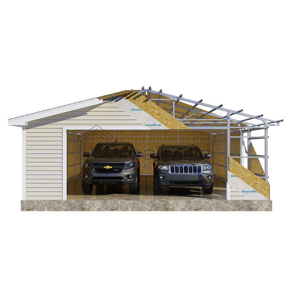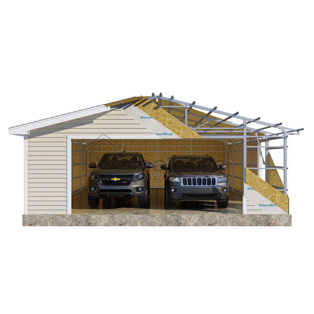 The required side girt components in the Summit design result in a more substantial building frame and allow for the use of plywood or OSB for vinyl or other siding products. And assembly time is drastically reduced with our patented Slip-Fit frame connections.