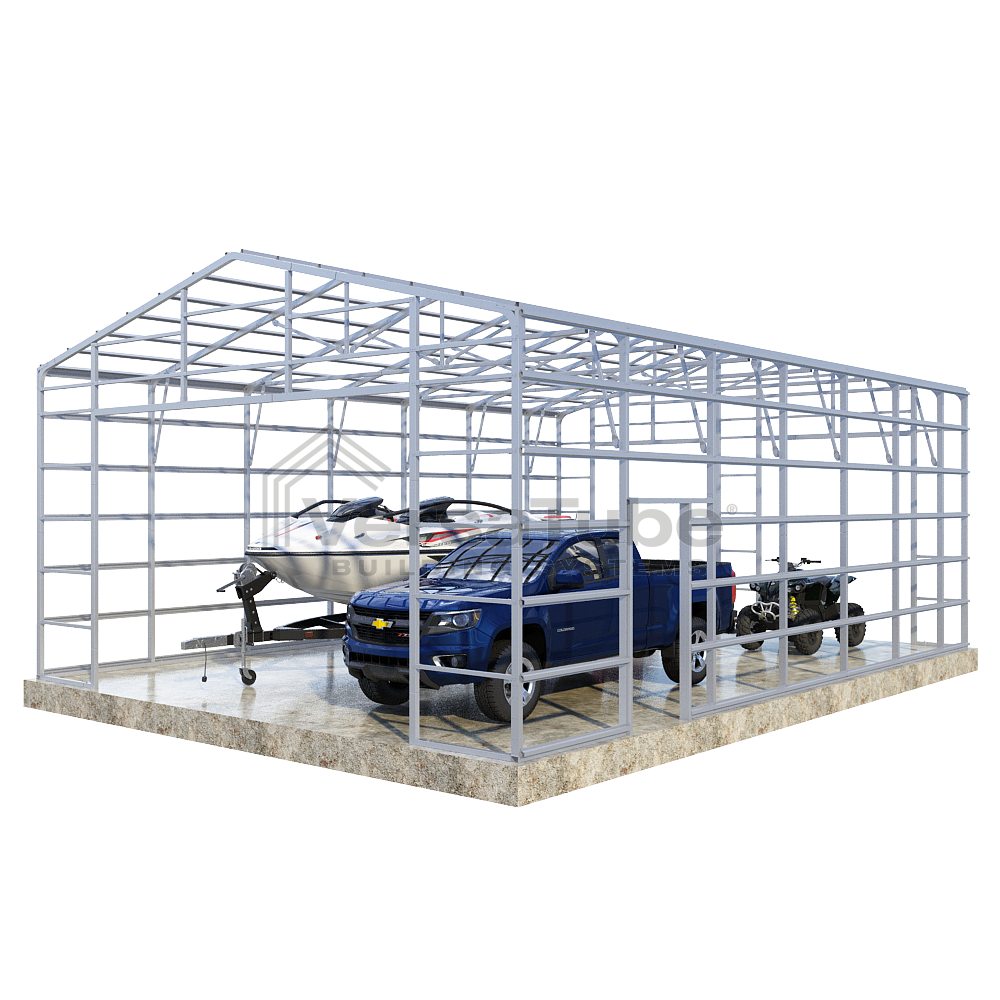 Ground anchoring requires VersaTube rebar anchors centered in post holes and backfilled with concrete. Anchoring to a concrete slab or concrete footing requires concrete wedge anchor bolts. Anchors are provided with each building and carport kit. You will make your selection prior to checkout.