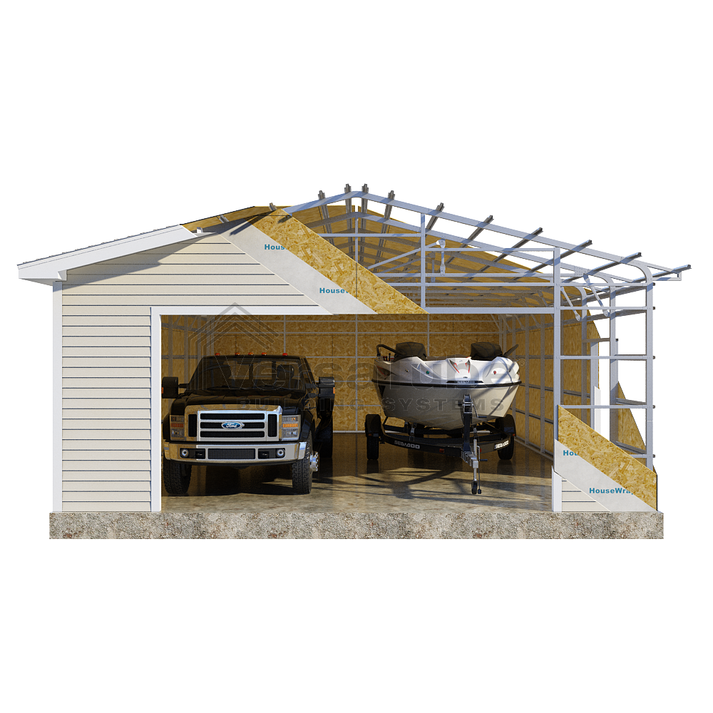 The required side girt components in the Summit design result in a more substantial building frame and allow for the use of plywood or OSB for vinyl or other siding products. And assembly time is drastically reduced with our patented Slip-Fit frame connections.