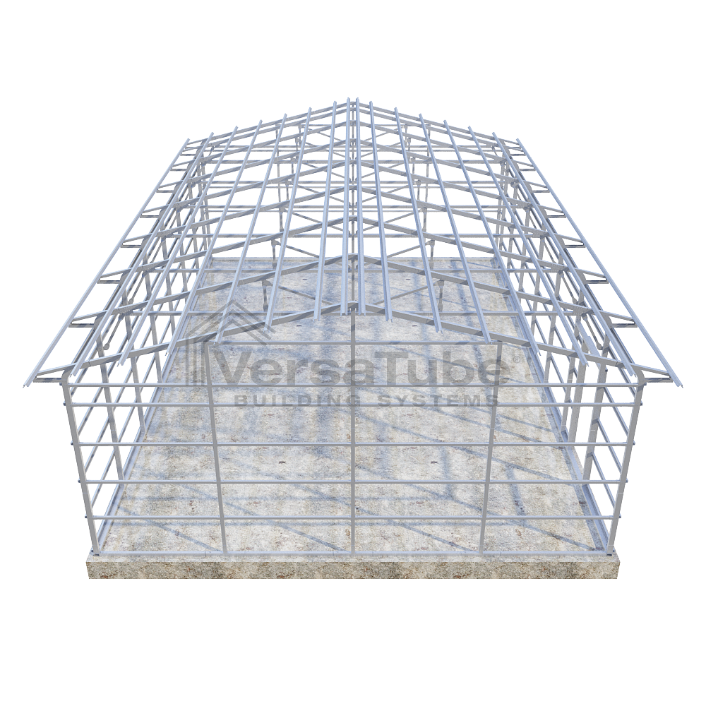 Additional interior truss bracing and 26 gauge sheet metal are available options if you are building in a higher snow load and/or wind load area and local code requirements must be achieved. Call a VersaTube Product Specialist 1-800-810-2993 with your load requirements and questions.