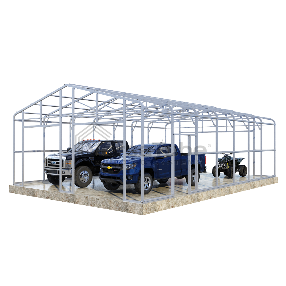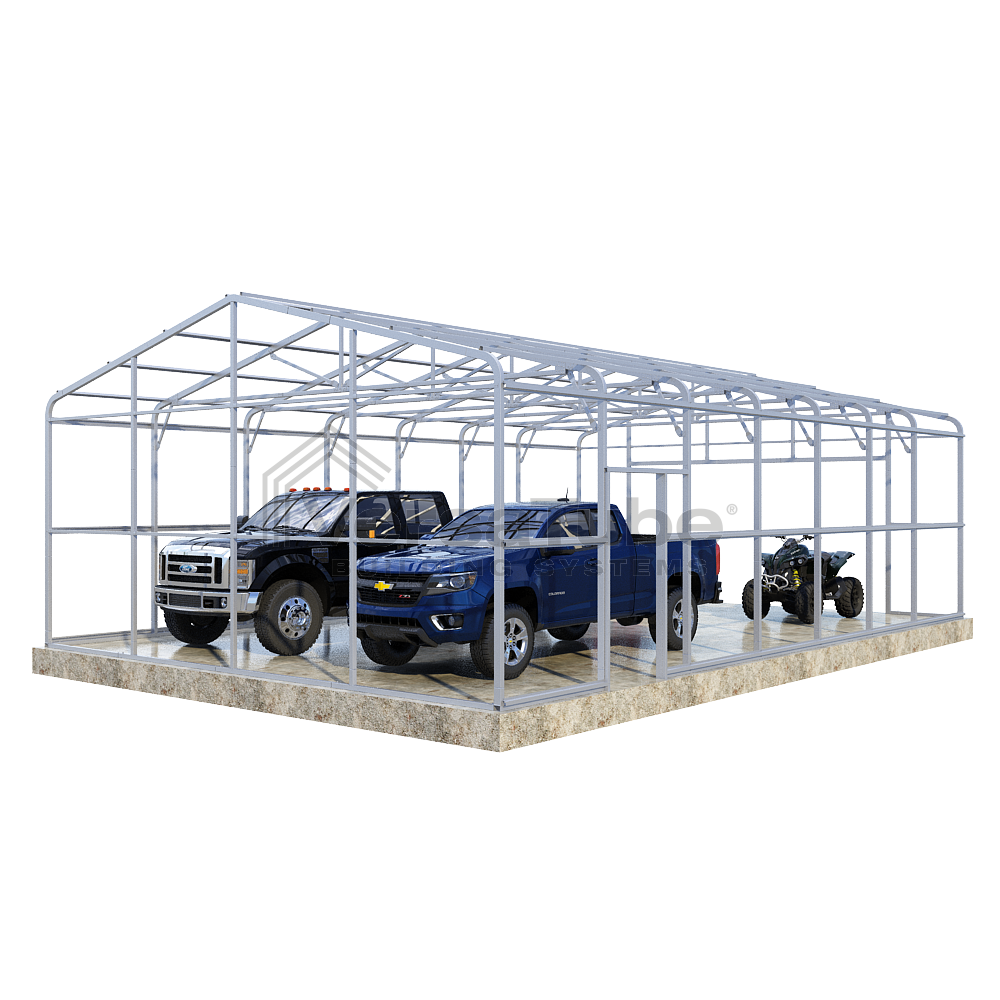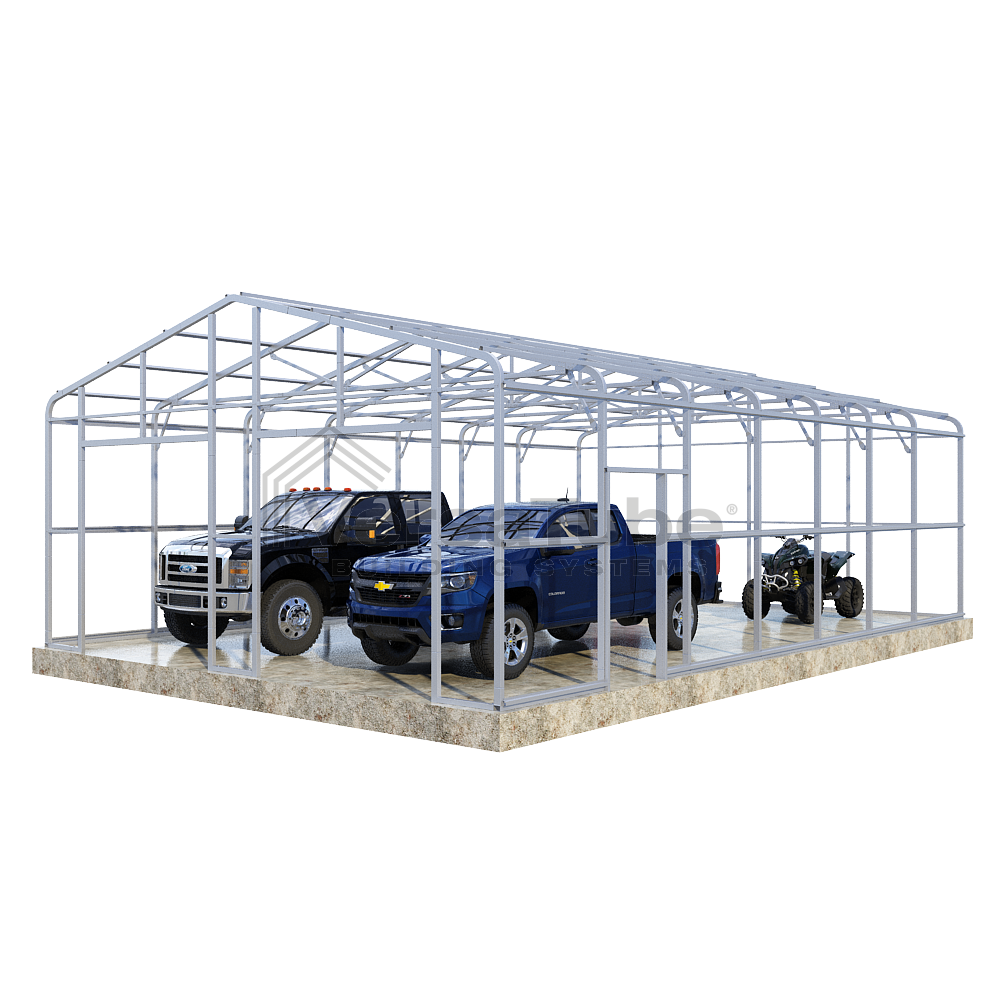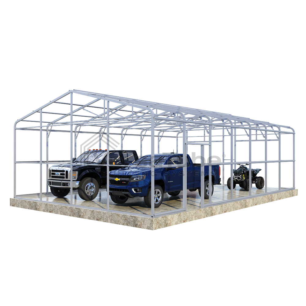 Ground anchoring requires VersaTube rebar anchors centered in post holes and backfilled with concrete. Anchoring to a concrete slab or concrete footing requires concrete wedge anchor bolts. Anchors are provided with each building and carport kit. You will make your selection prior to checkout.