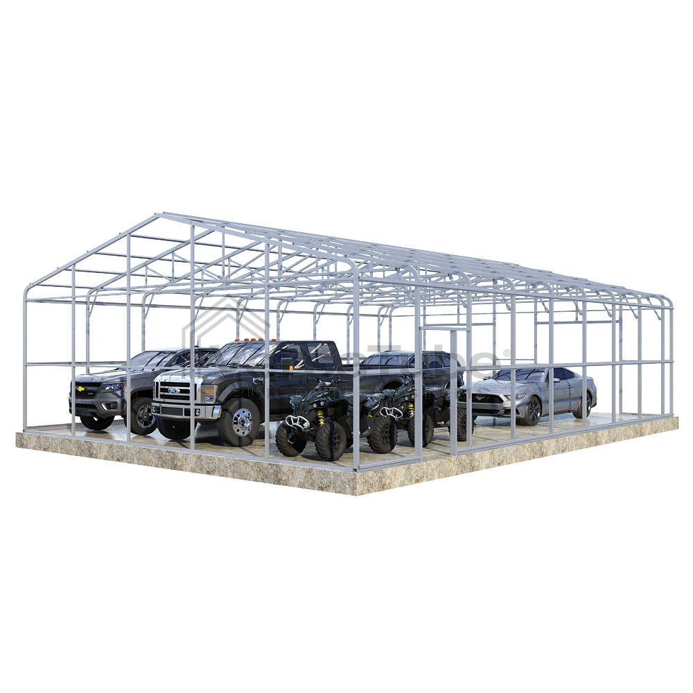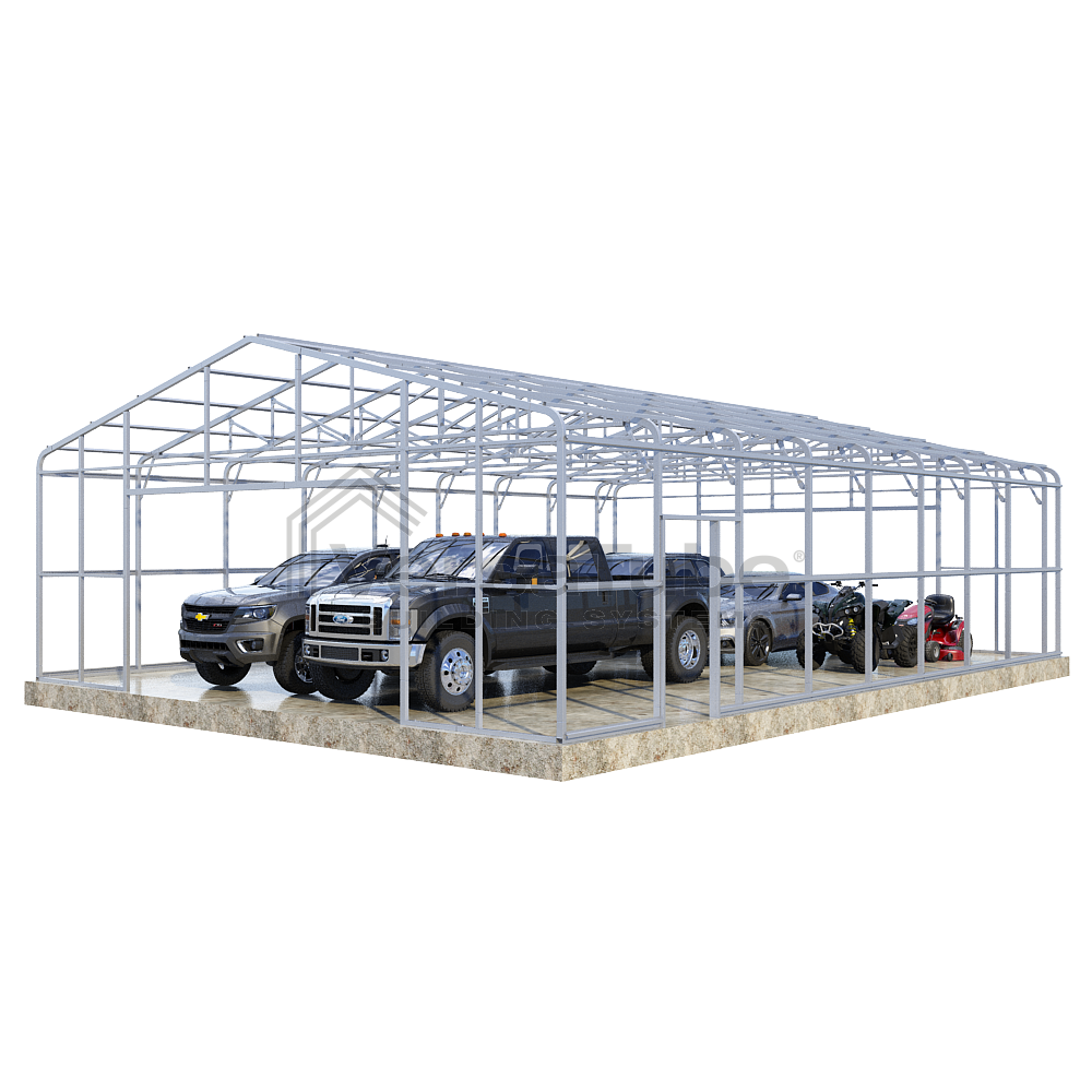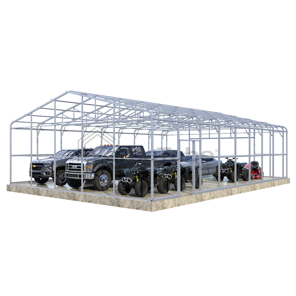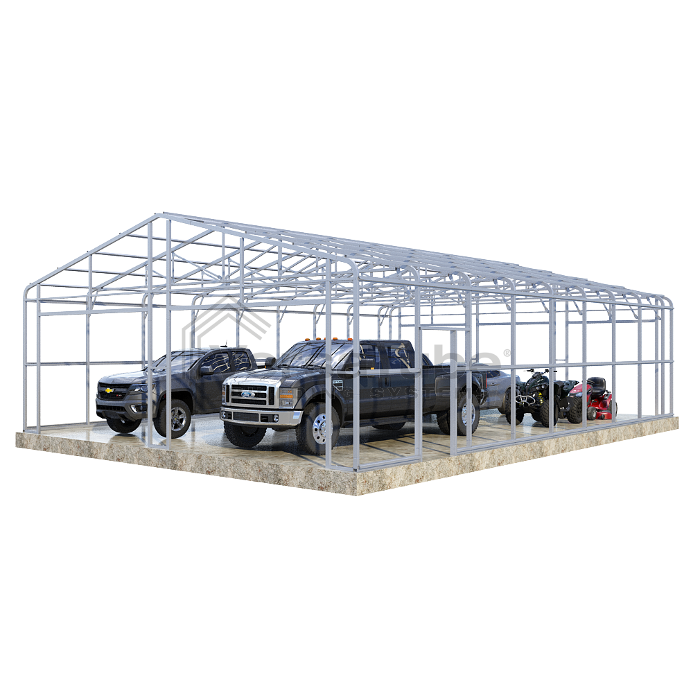 Ground anchoring requires VersaTube rebar anchors centered in post holes and backfilled with concrete. Anchoring to a concrete slab or concrete footing requires concrete wedge anchor bolts. Anchors are provided with each building and carport kit. You will make your selection prior to checkout.