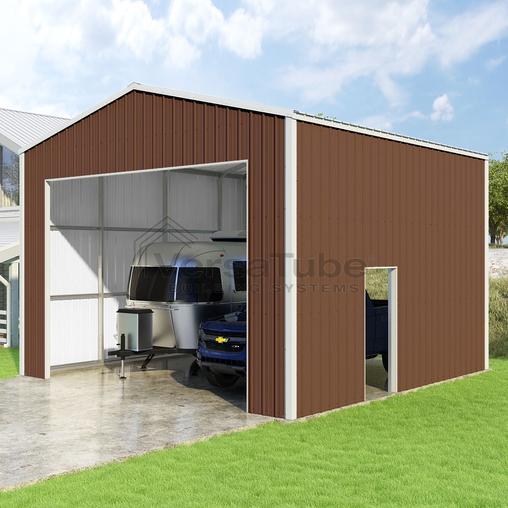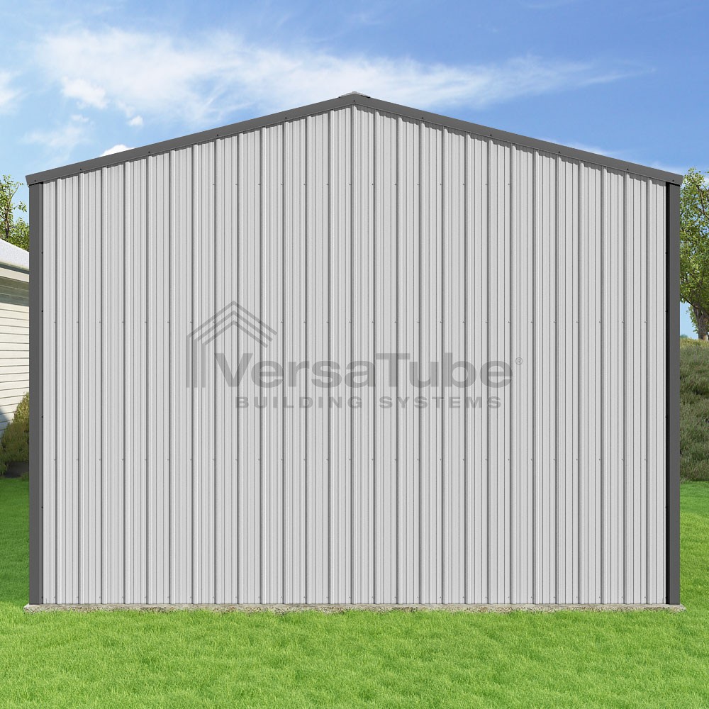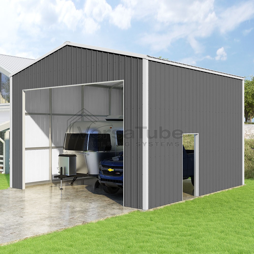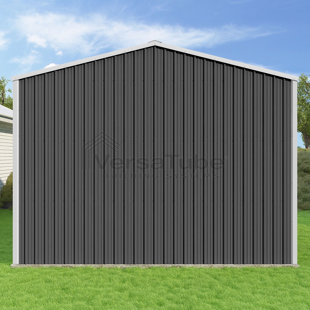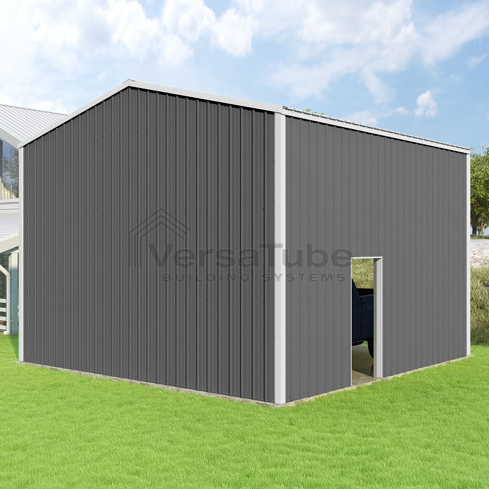 Summit Series DIY garage kit features vertical sheet metal roof and siding panels for a consistent look.