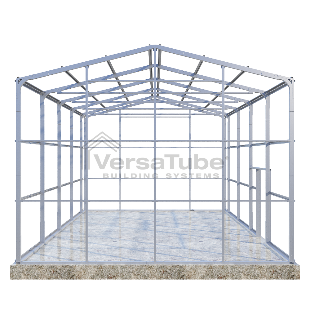 Additional interior truss bracing and 26 gauge sheet metal are available options if you are building in a higher snow load and/or wind load area and local code requirements must be achieved. Call a VersaTube Product Specialist 1-800-810-2993 with your load requirements and questions.