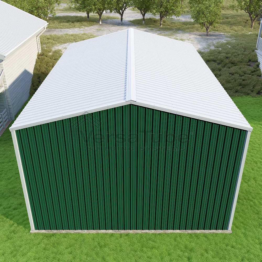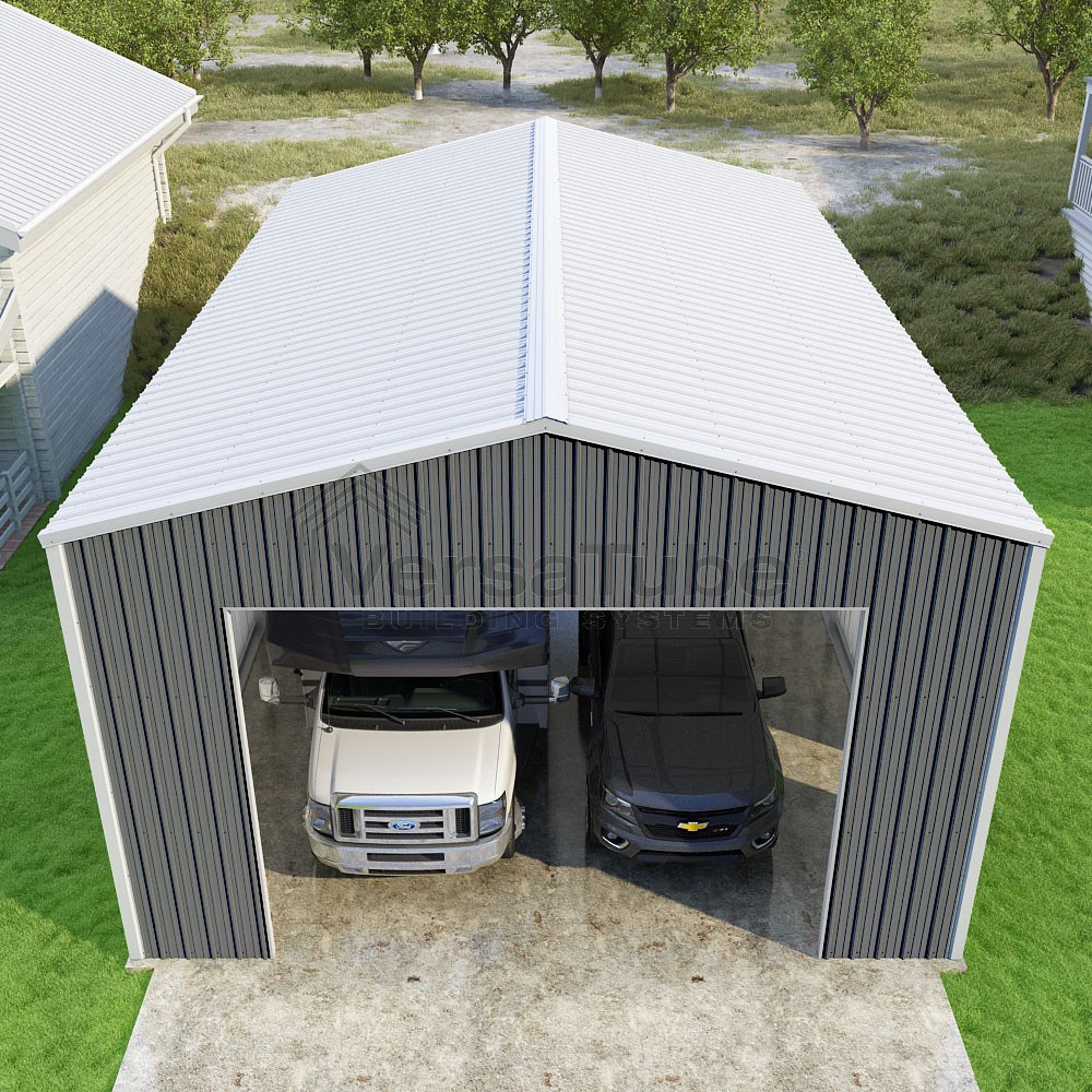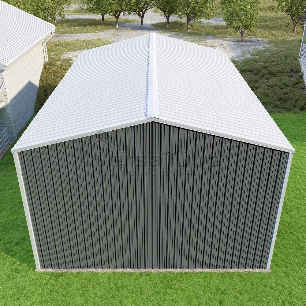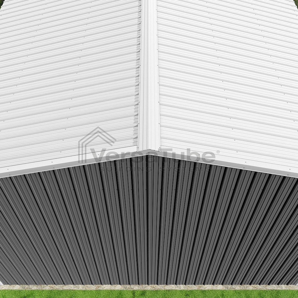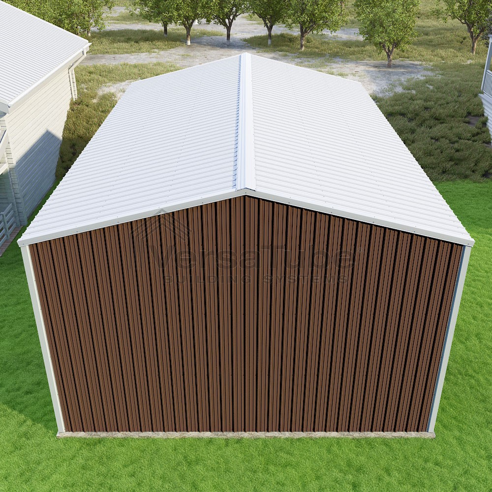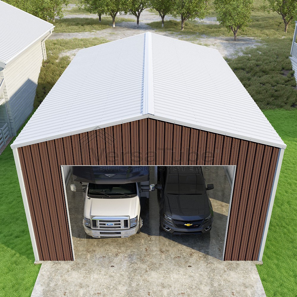 Summit Series DIY garage kit features vertical sheet metal roof and siding panels for a consistent look.