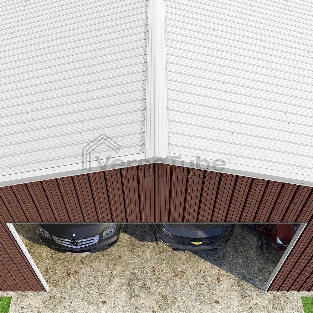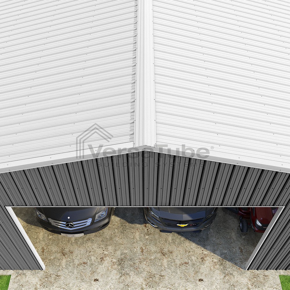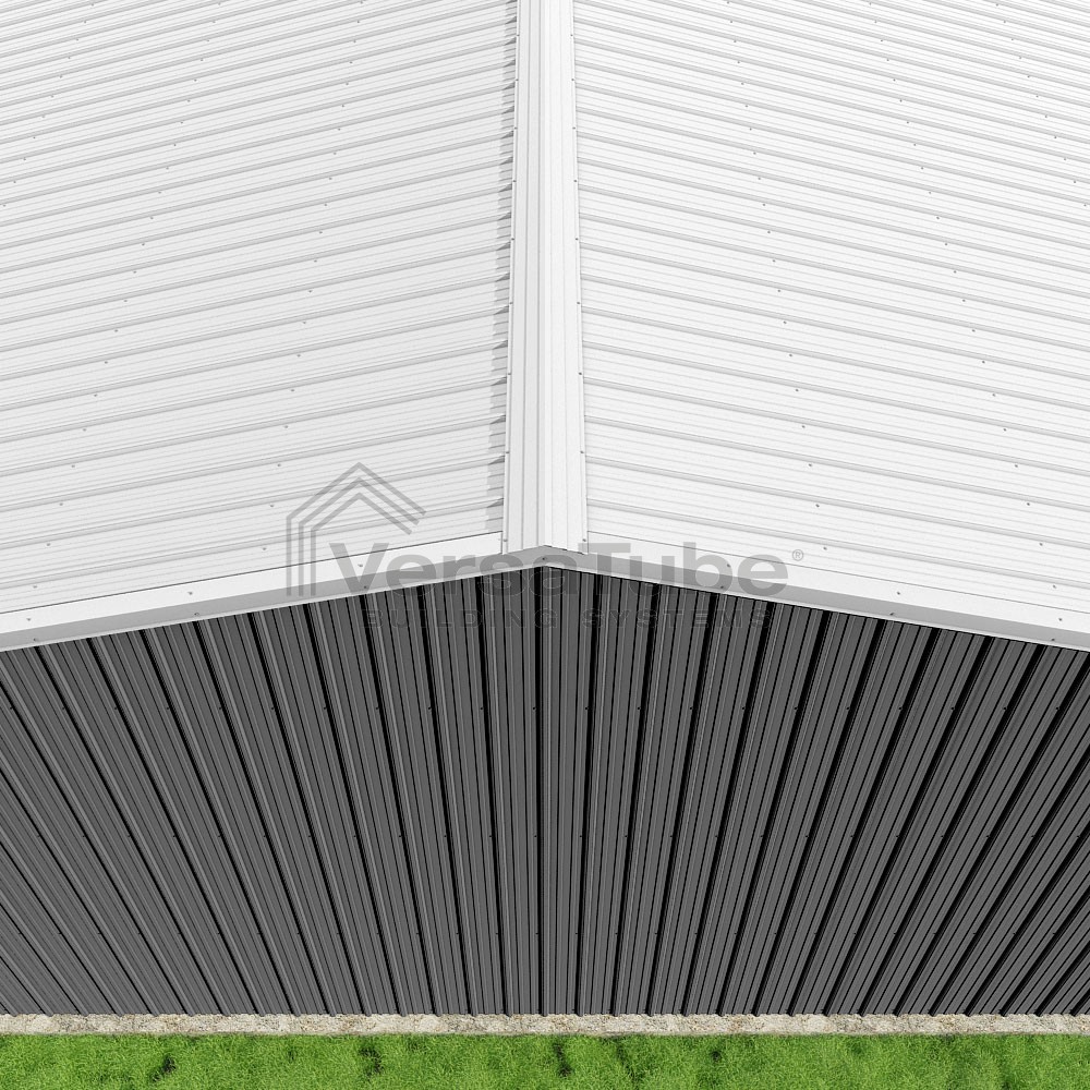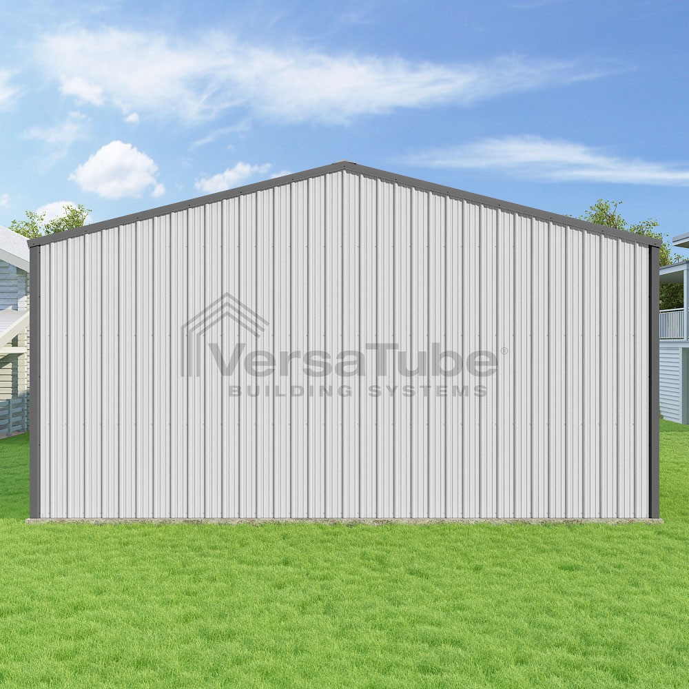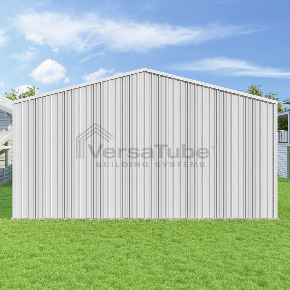 Summit Series DIY garage kit features vertical sheet metal roof and siding panels for a consistent look.