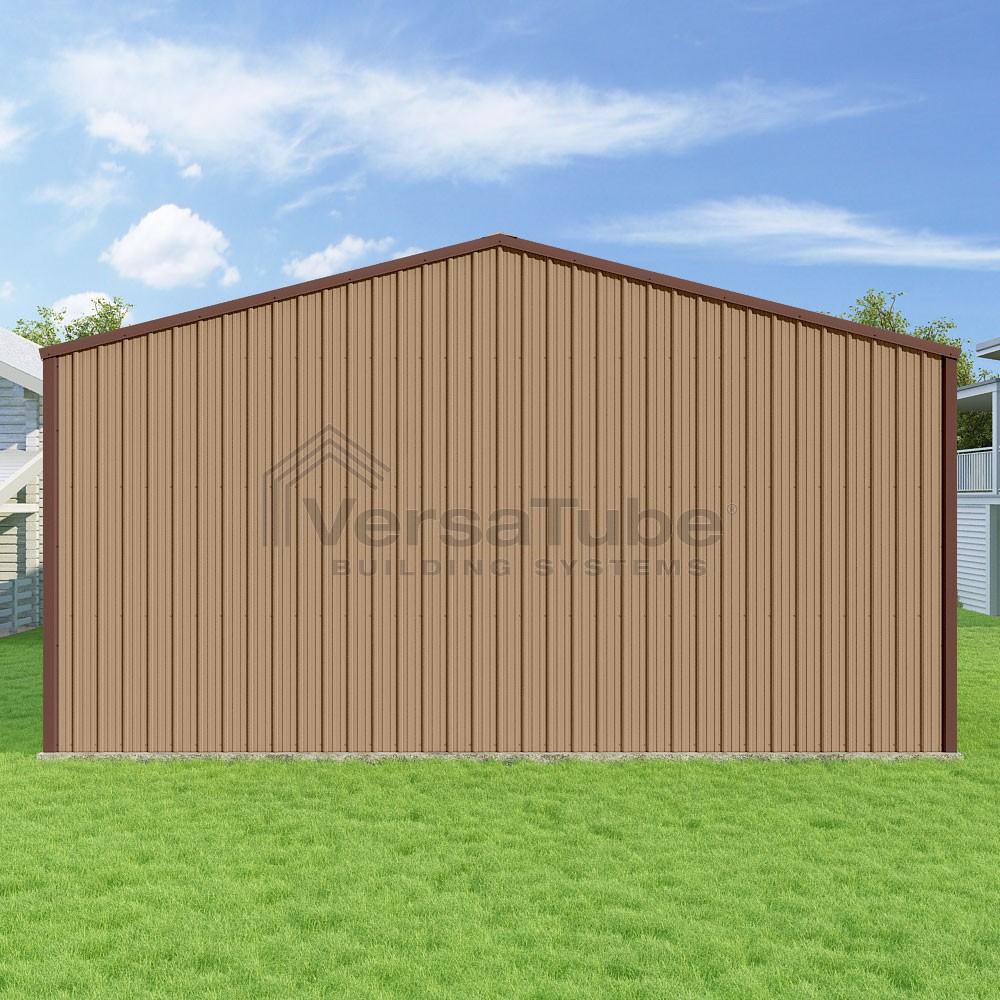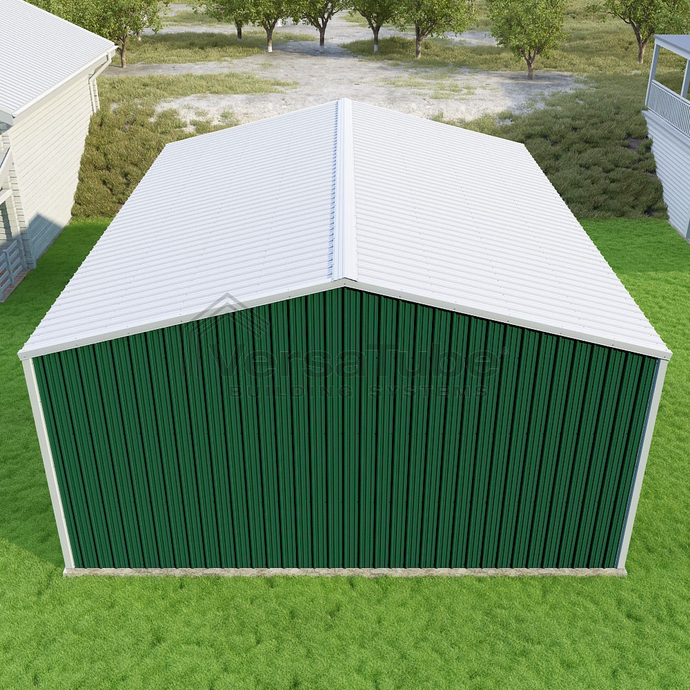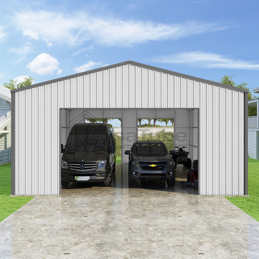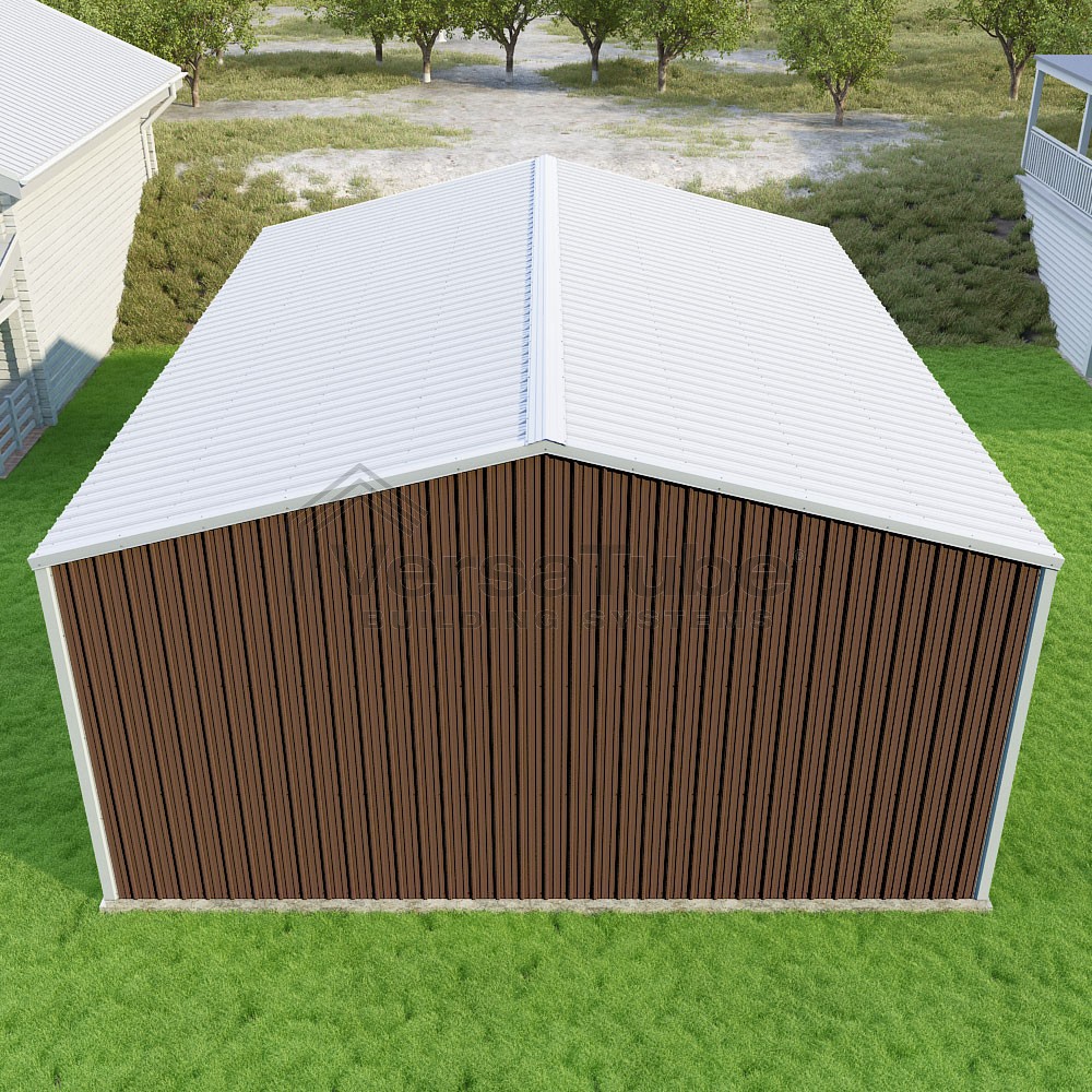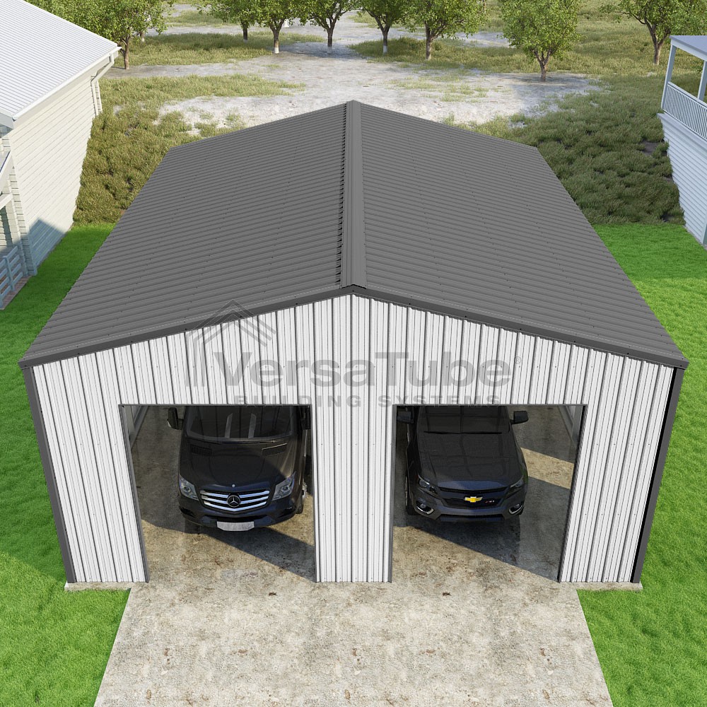 Summit Series DIY garage kit features vertical sheet metal roof and siding panels for a consistent look.