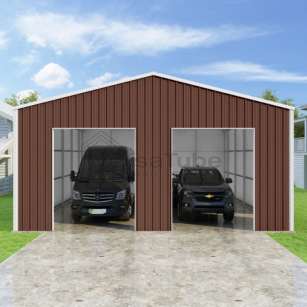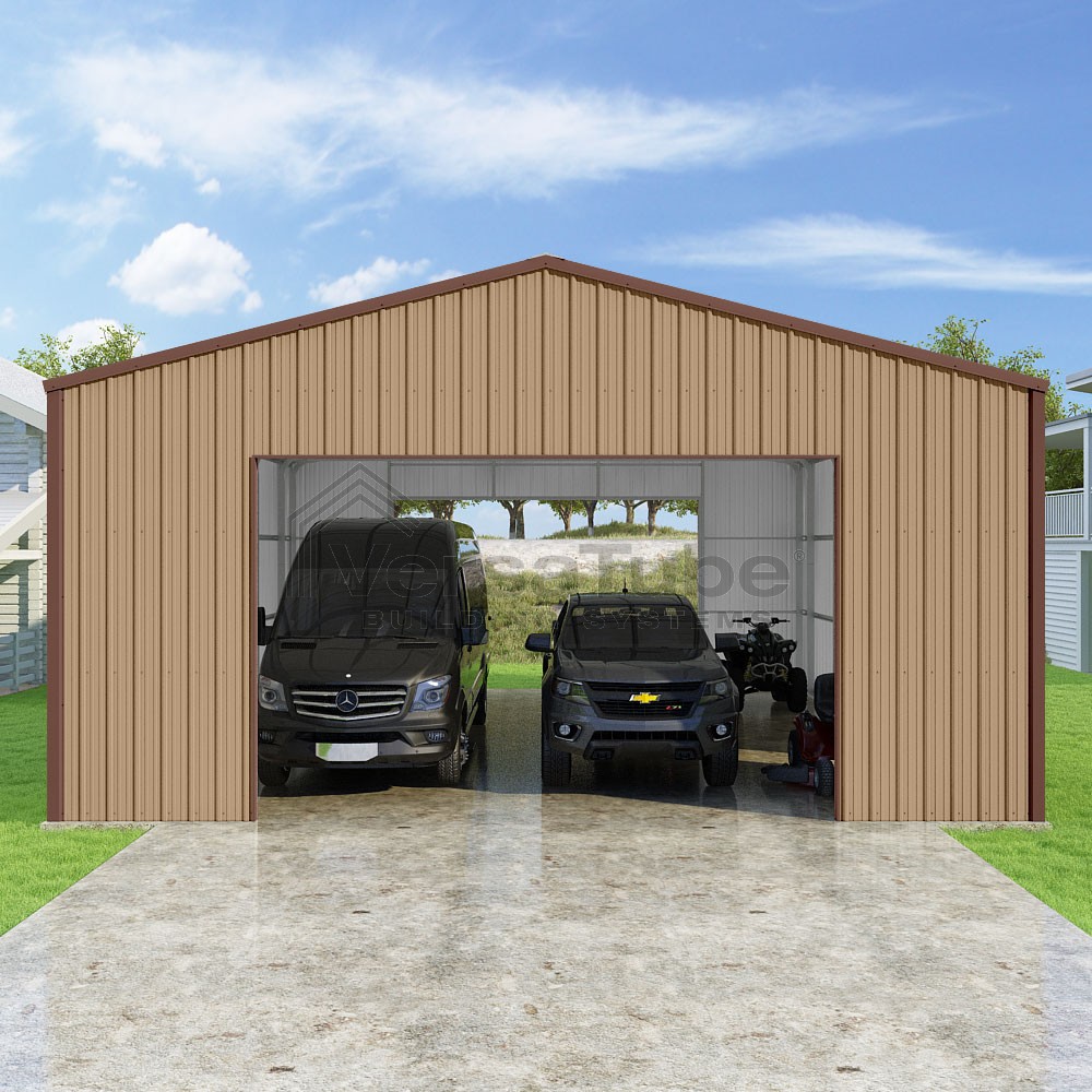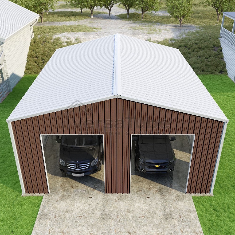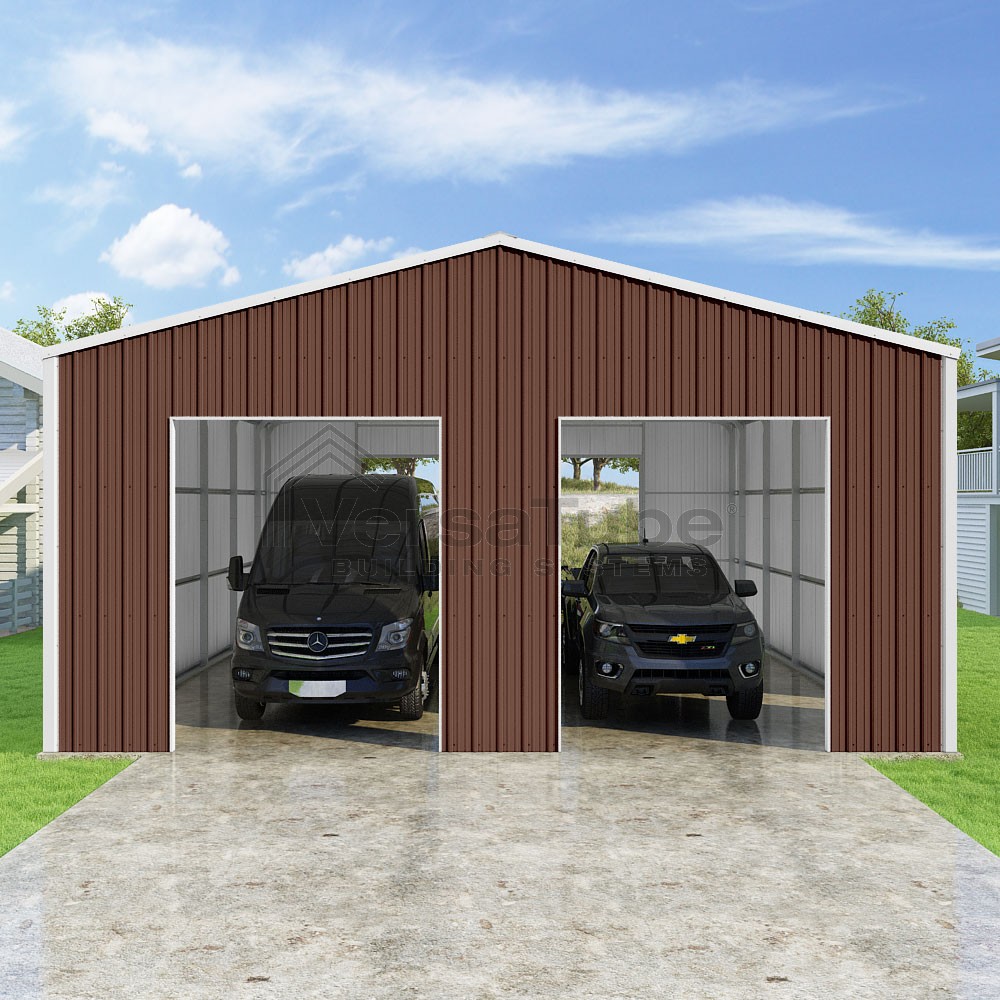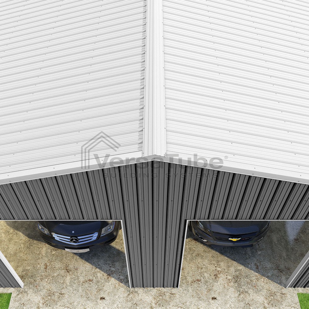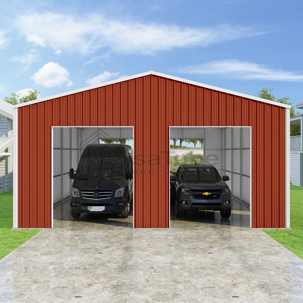 Summit Series DIY garage kit features vertical sheet metal roof and siding panels for a consistent look.