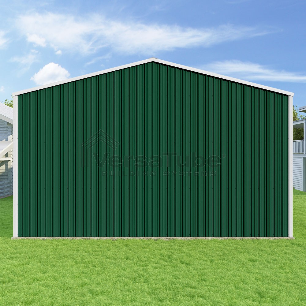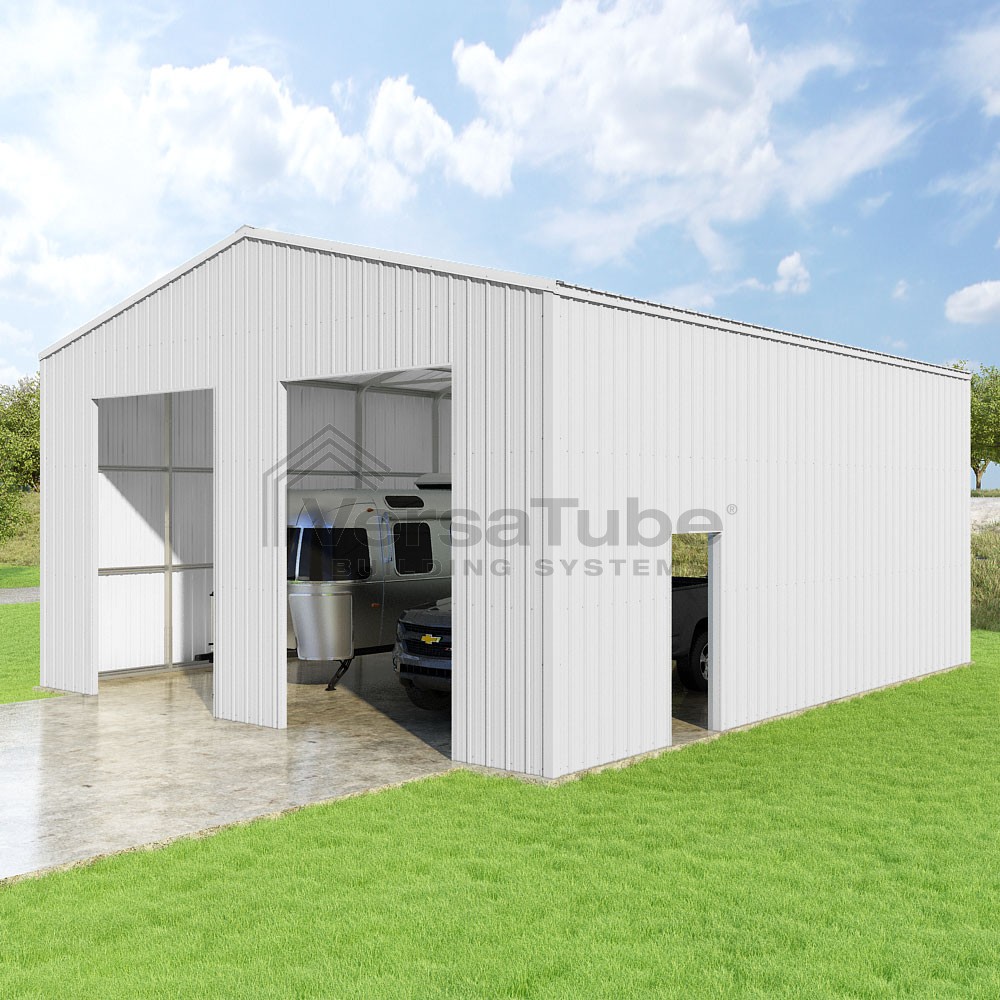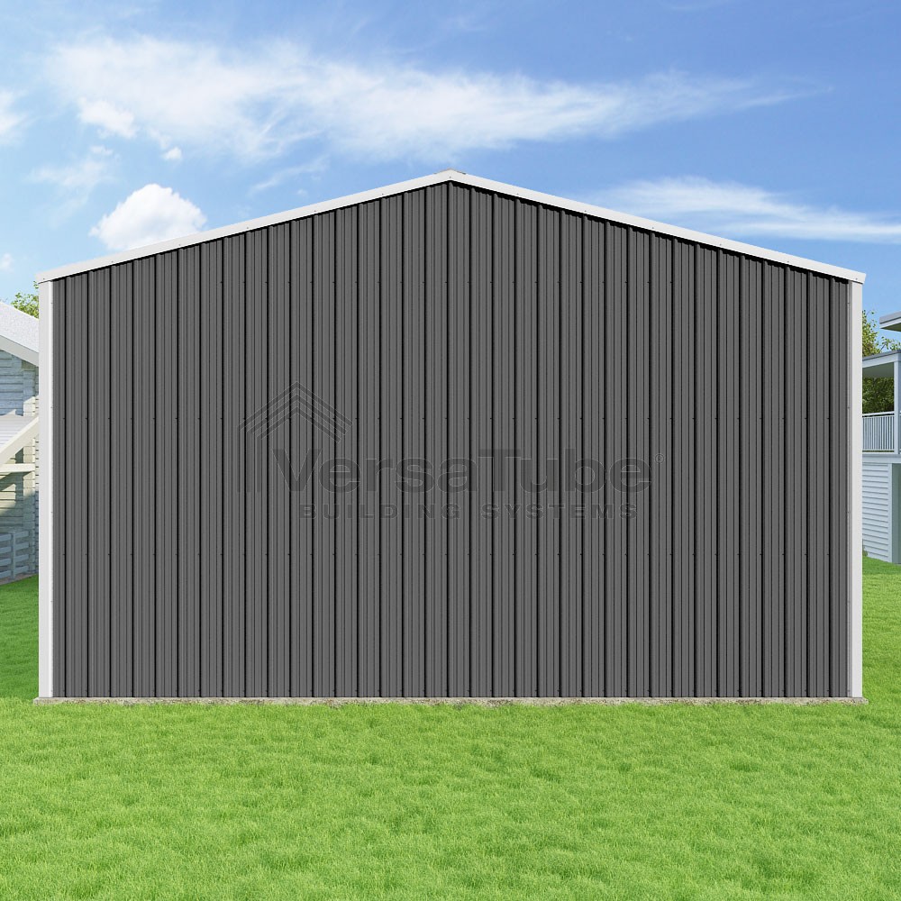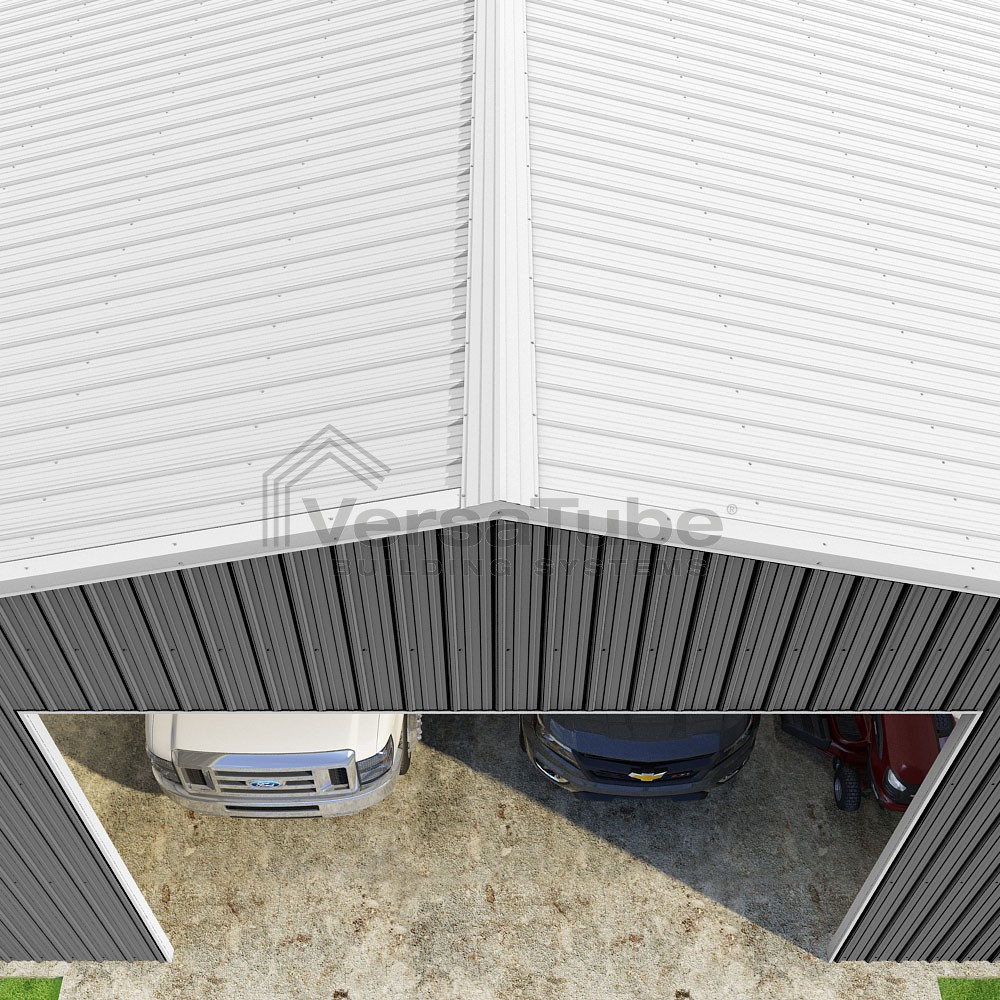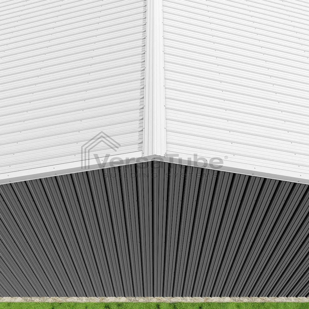 Summit Series DIY garage kit features vertical sheet metal roof and siding panels for a consistent look.