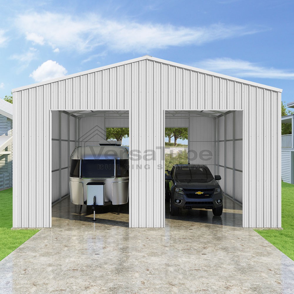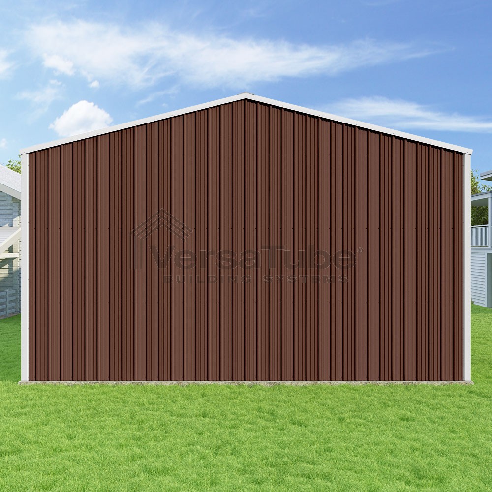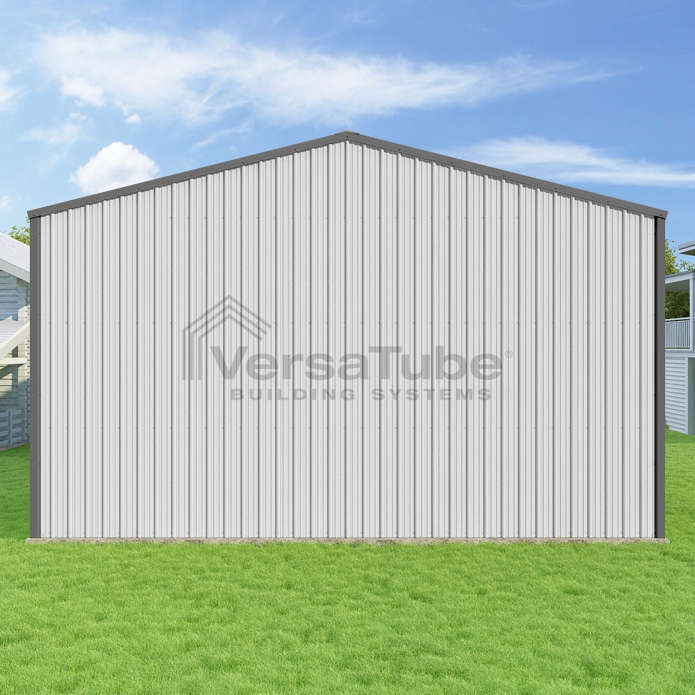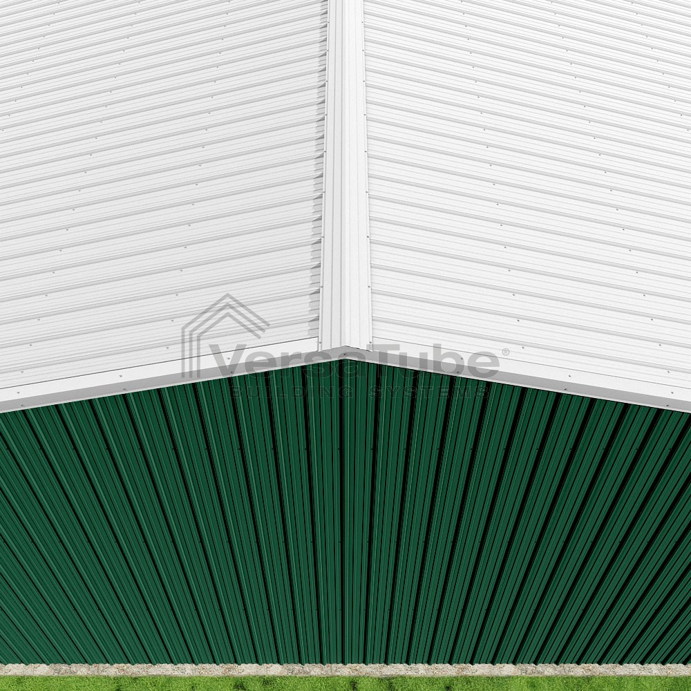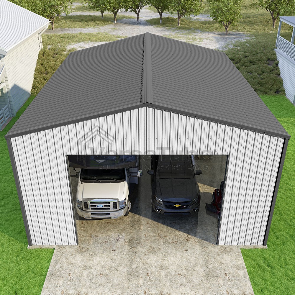 Summit Series DIY garage kit features vertical sheet metal roof and siding panels for a consistent look.