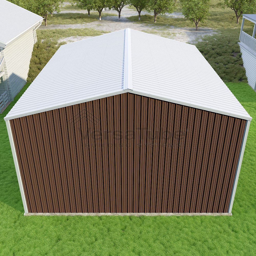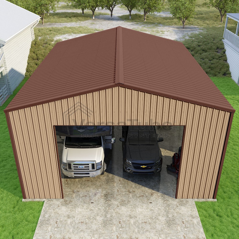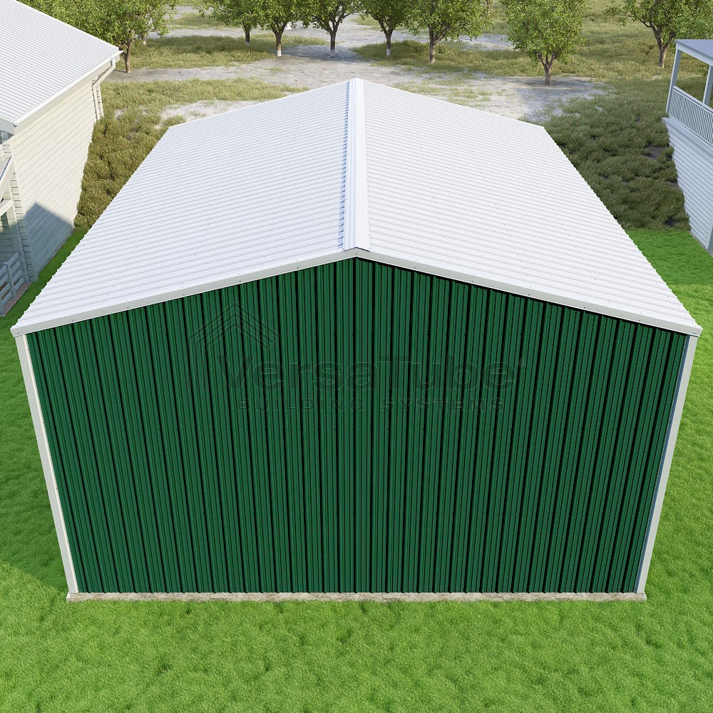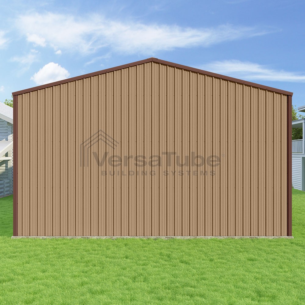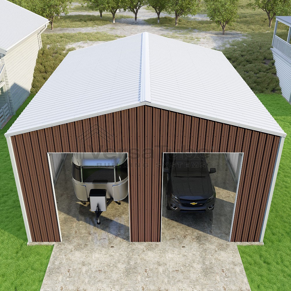 Summit Series DIY garage kit features vertical sheet metal roof and siding panels for a consistent look.