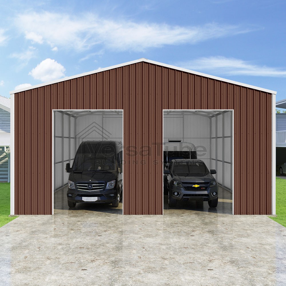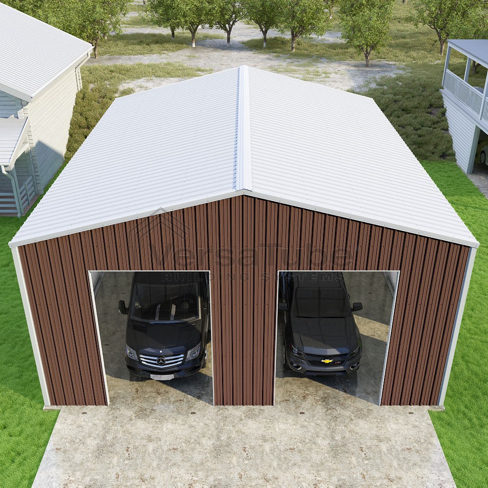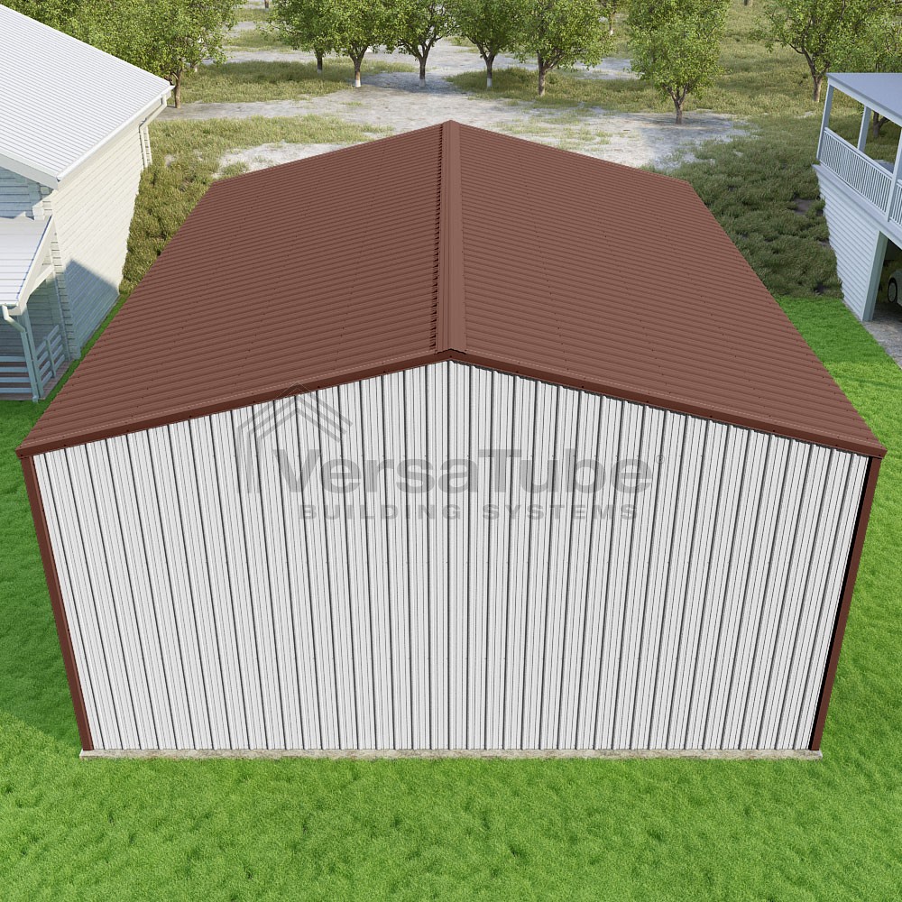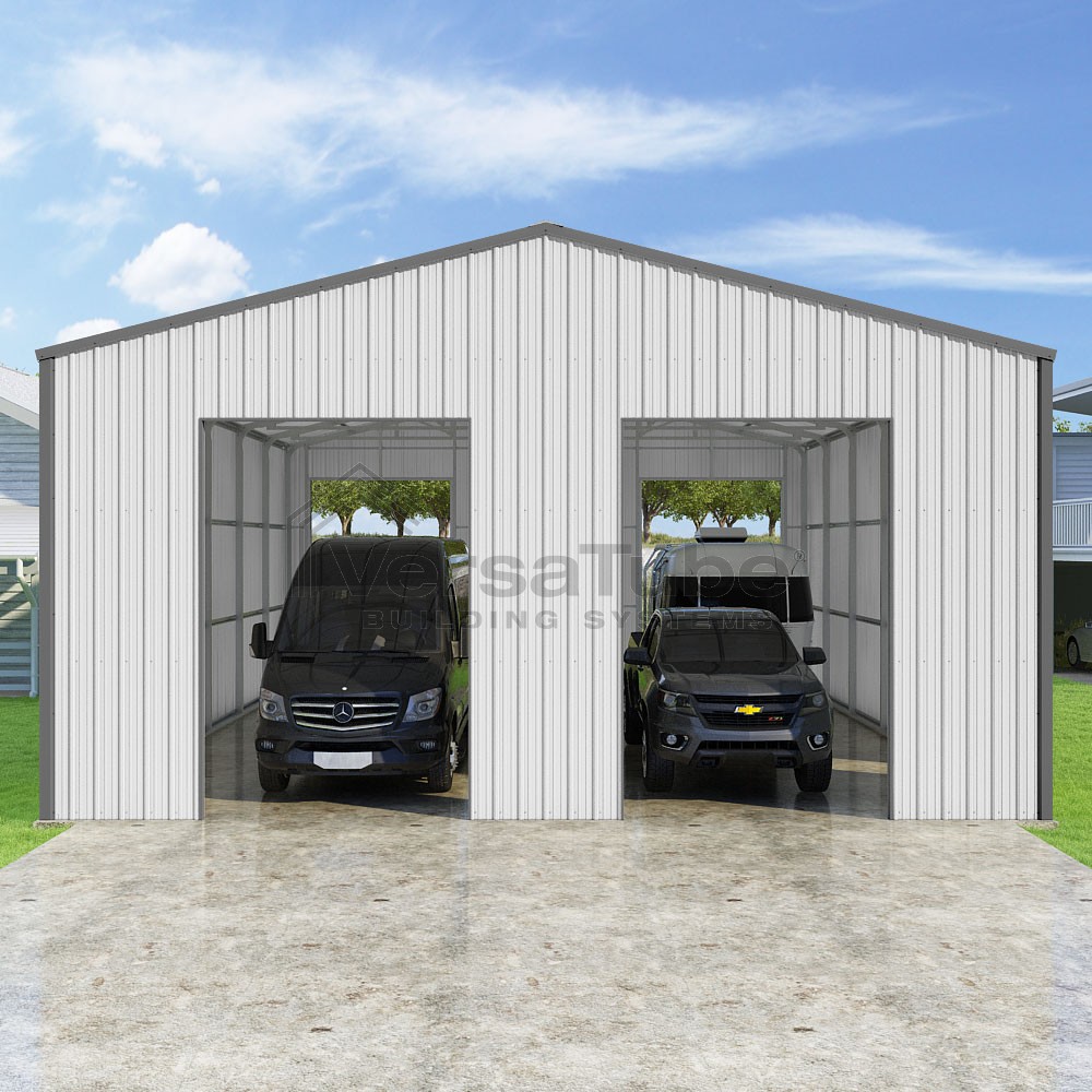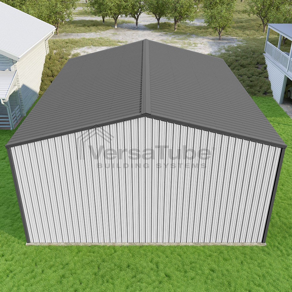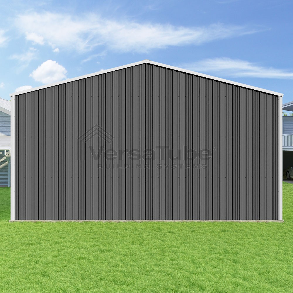 Summit Series DIY garage kit features vertical sheet metal roof and siding panels for a consistent look.