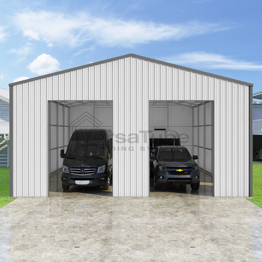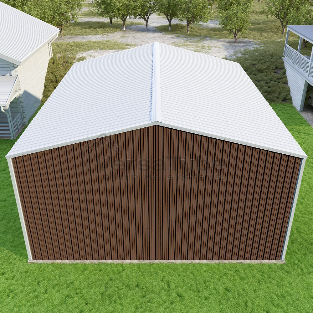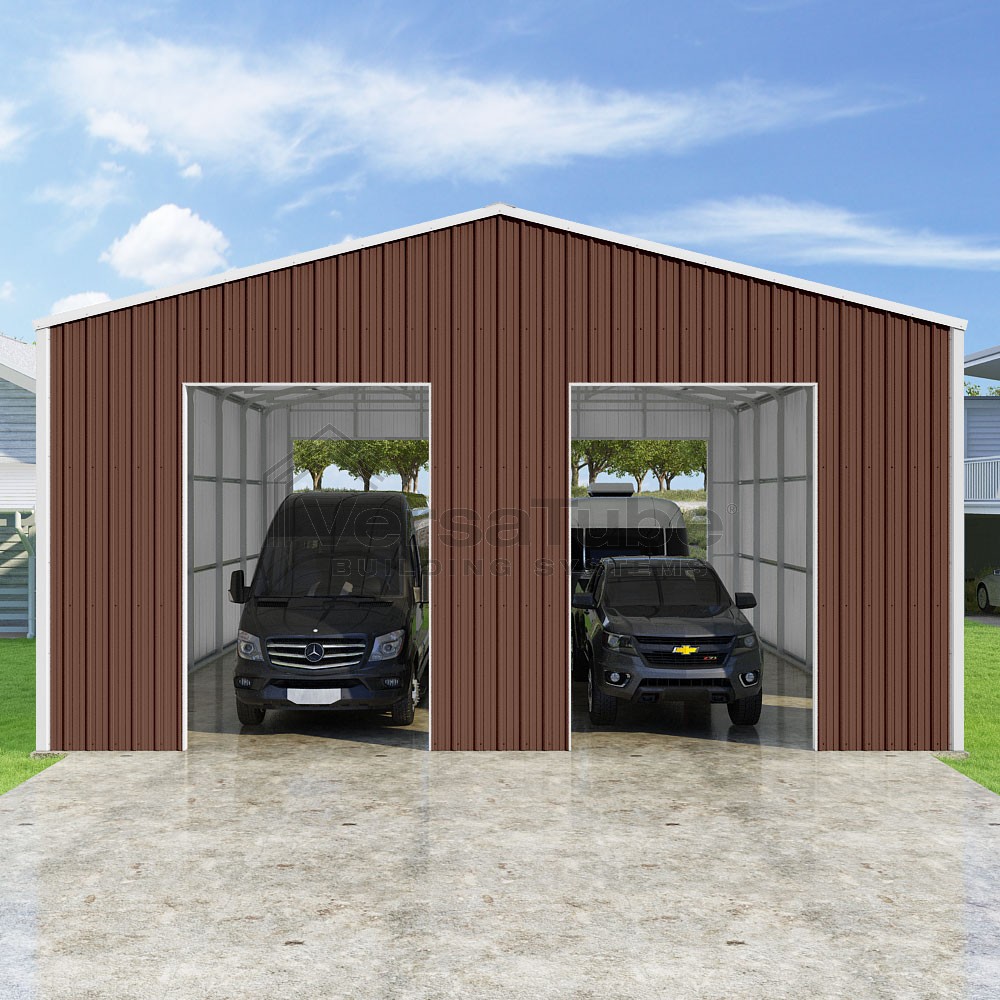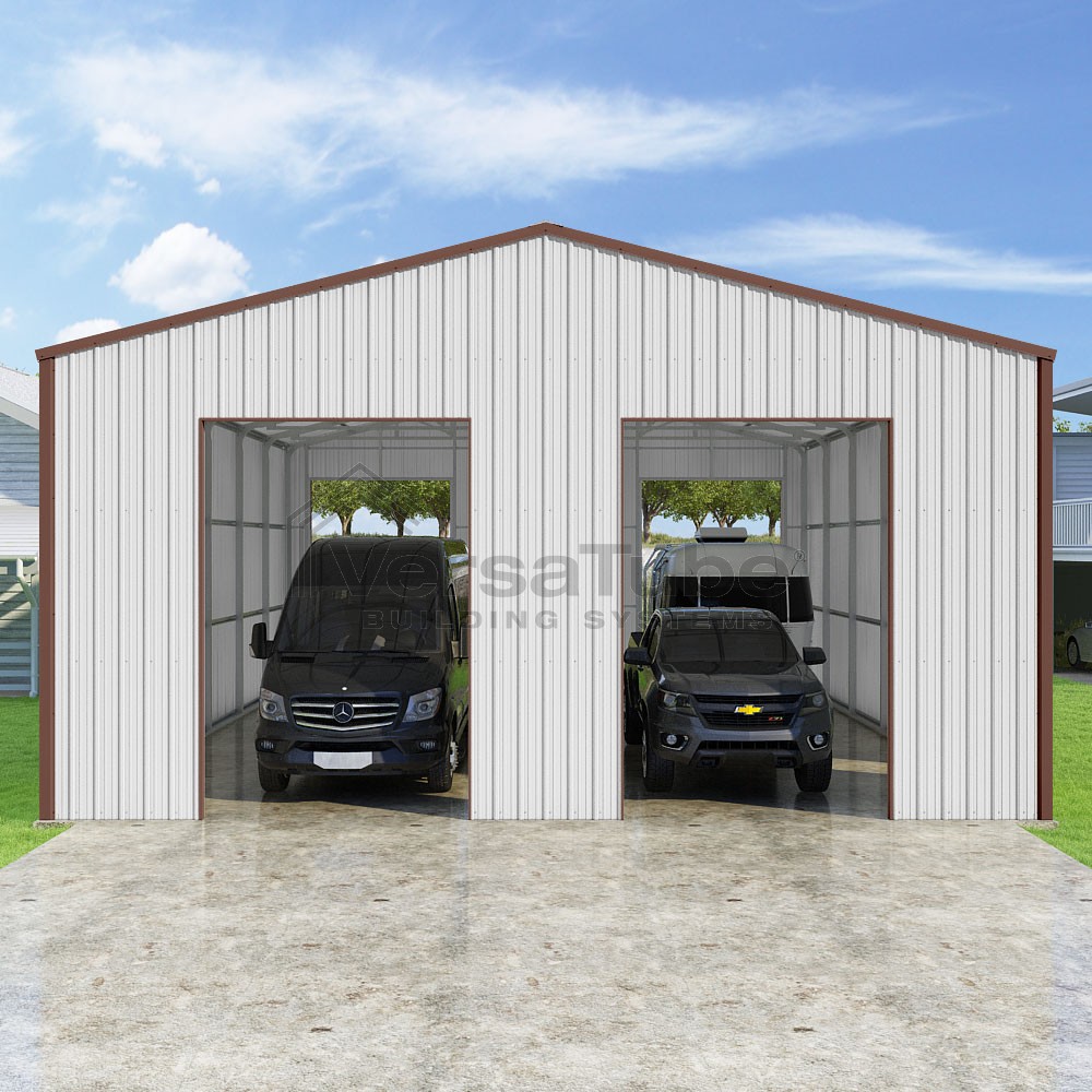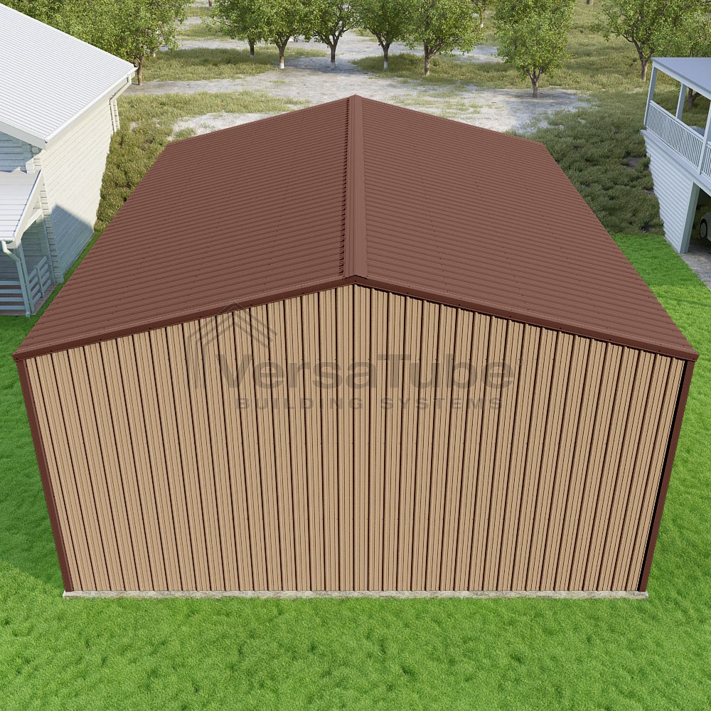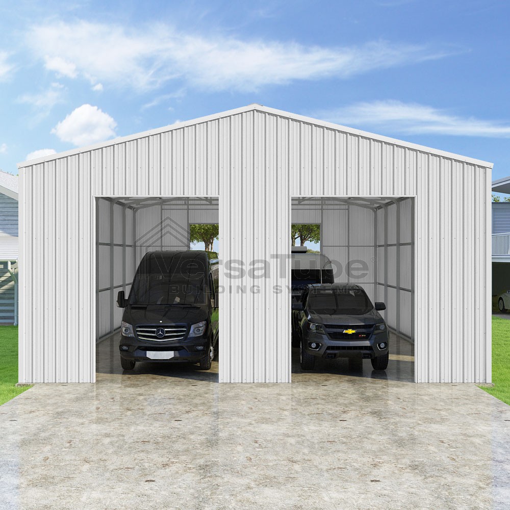 Summit Series DIY garage kit features vertical sheet metal roof and siding panels for a consistent look.