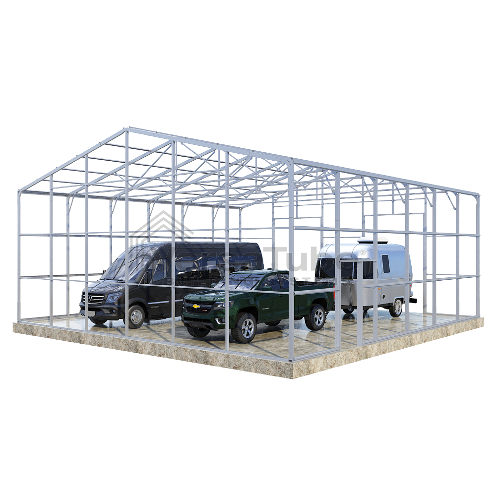 Ground anchoring requires VersaTube rebar anchors centered in post holes and backfilled with concrete. Anchoring to a concrete slab or concrete footing requires concrete wedge anchor bolts. Anchors are provided with each building and carport kit. You will make your selection prior to checkout.