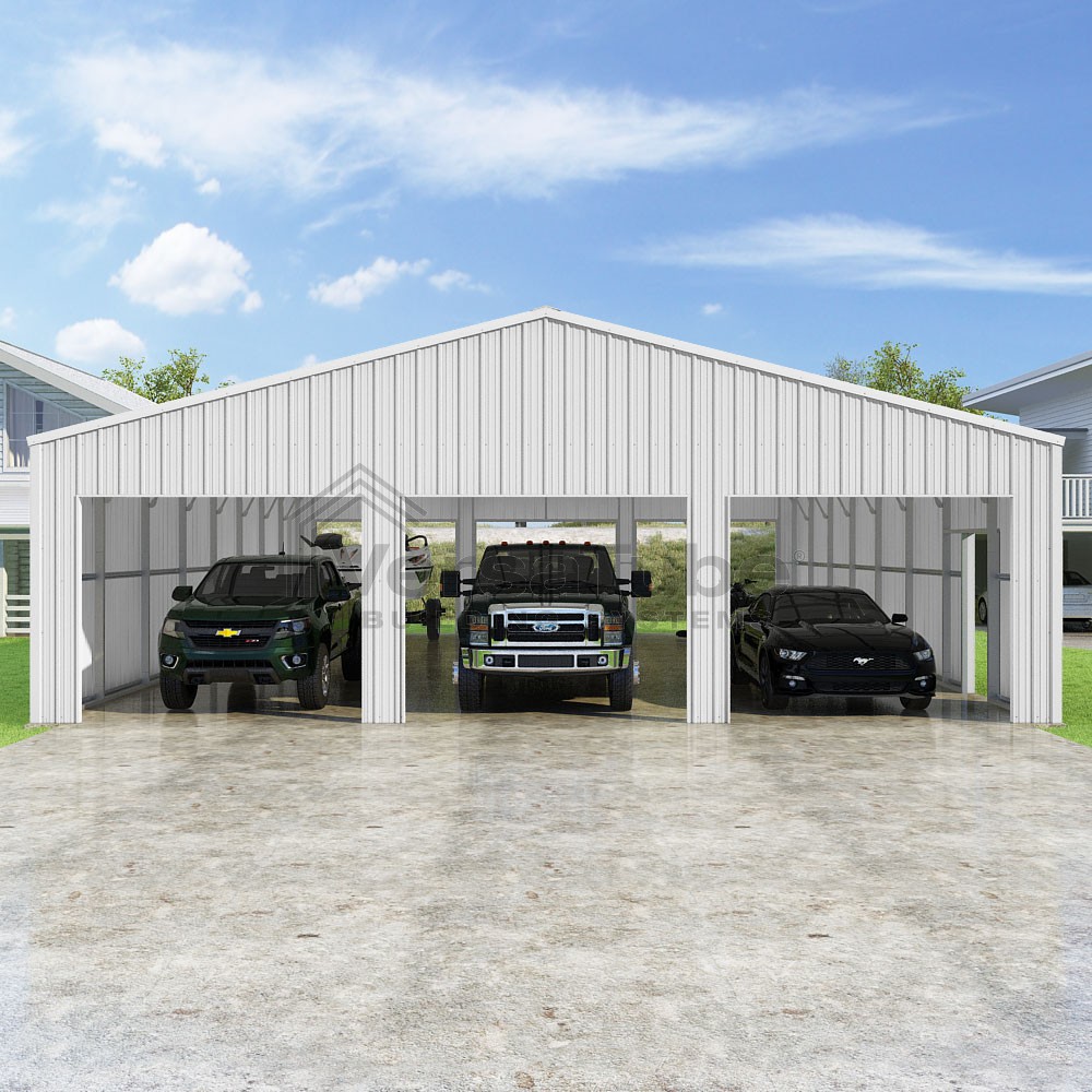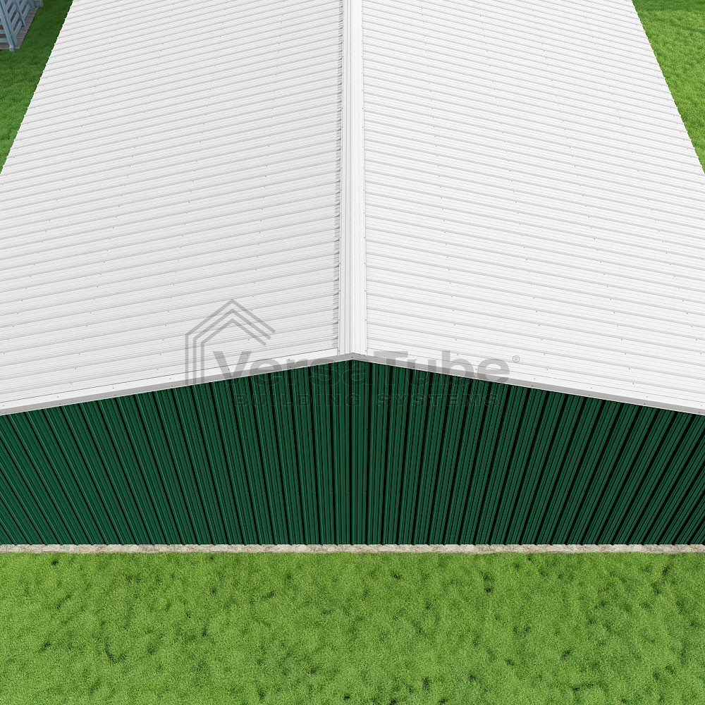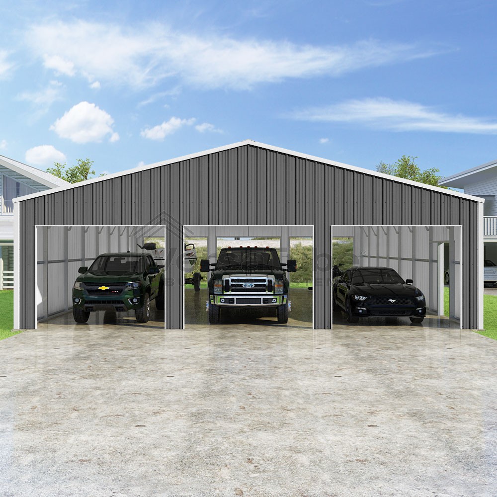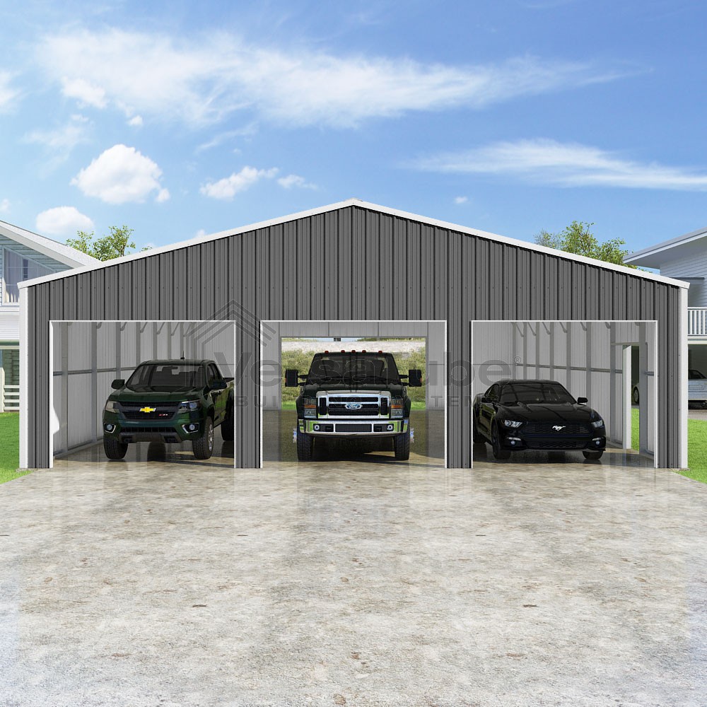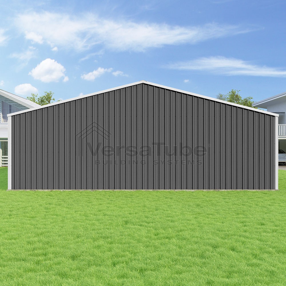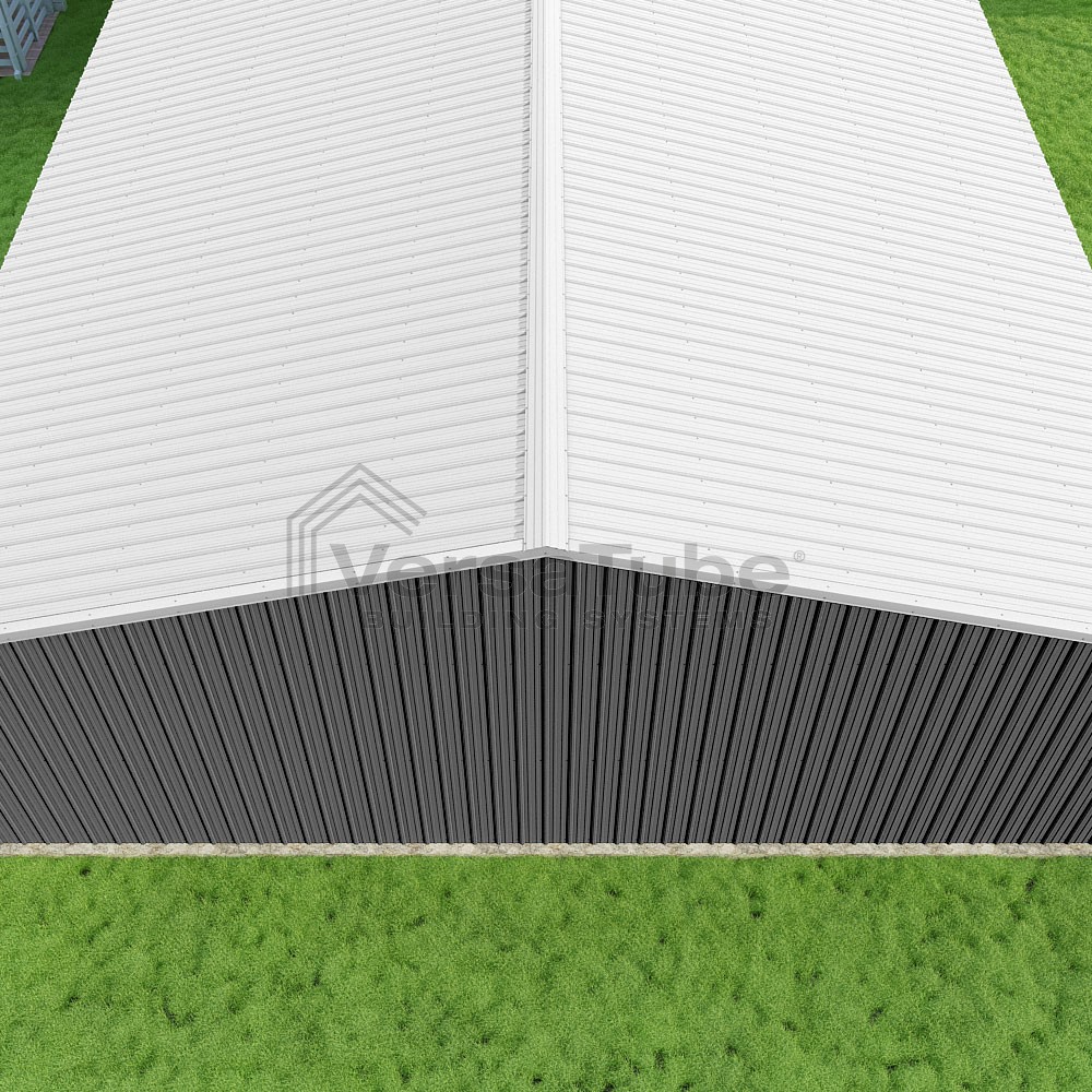 Summit Series DIY garage kit features vertical sheet metal roof and siding panels for a consistent look.