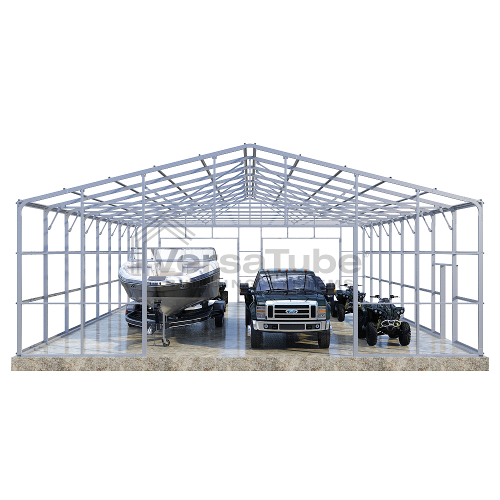 Additional interior truss bracing and 26 gauge sheet metal are available options if you are building in a higher snow load and/or wind load area and local code requirements must be achieved. Call a VersaTube Product Specialist 1-800-810-2993 with your load requirements and questions.