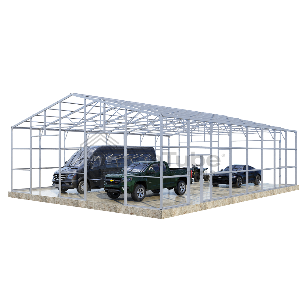 Ground anchoring requires VersaTube rebar anchors centered in post holes and backfilled with concrete. Anchoring to a concrete slab or concrete footing requires concrete wedge anchor bolts. Anchors are provided with each building and carport kit. You will make your selection prior to checkout.