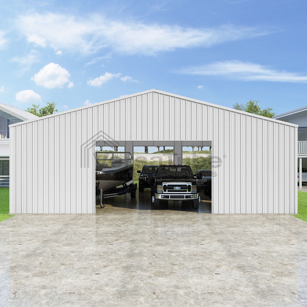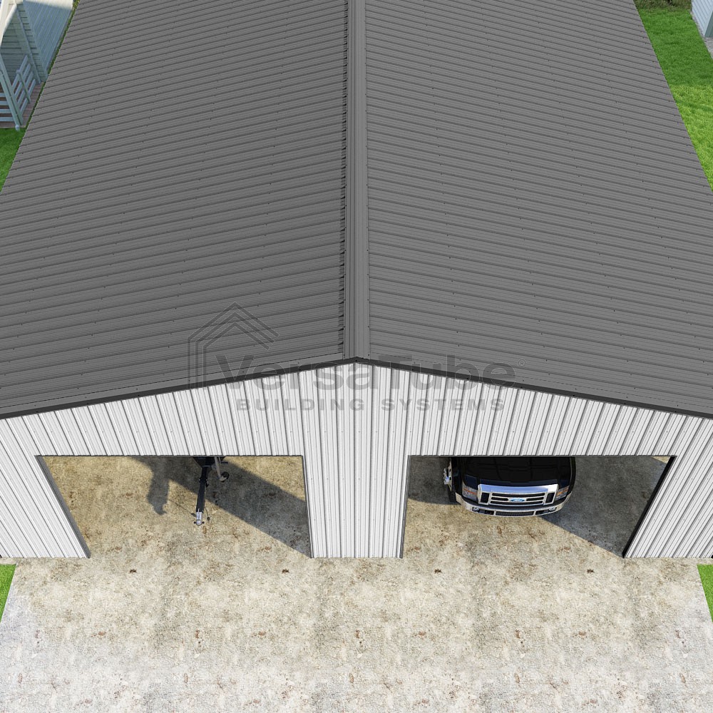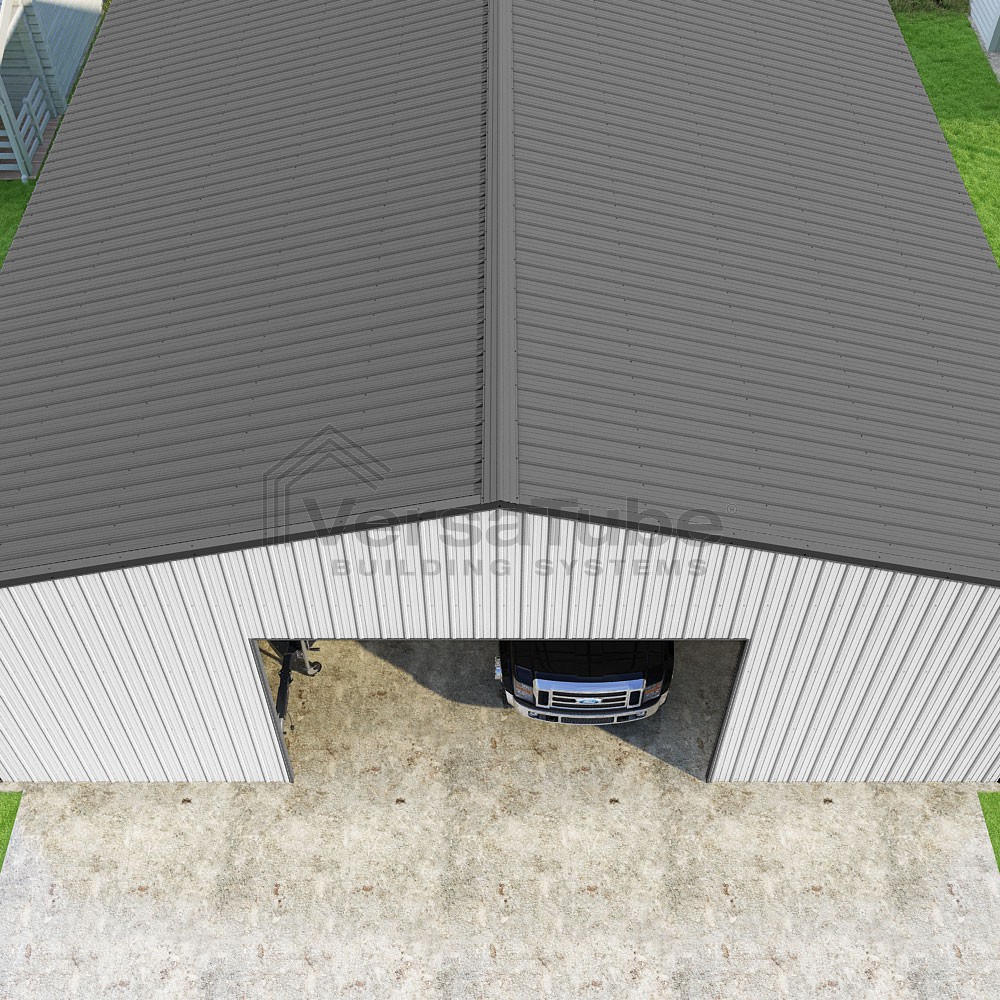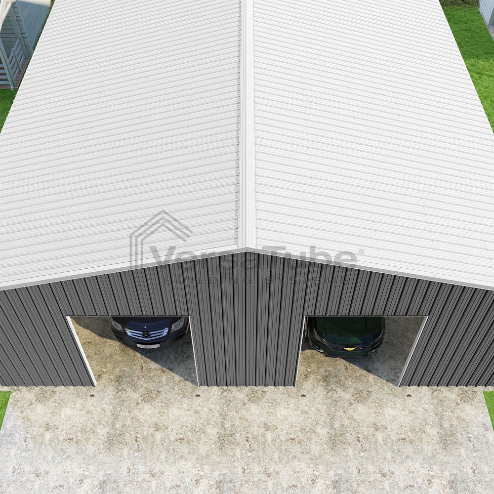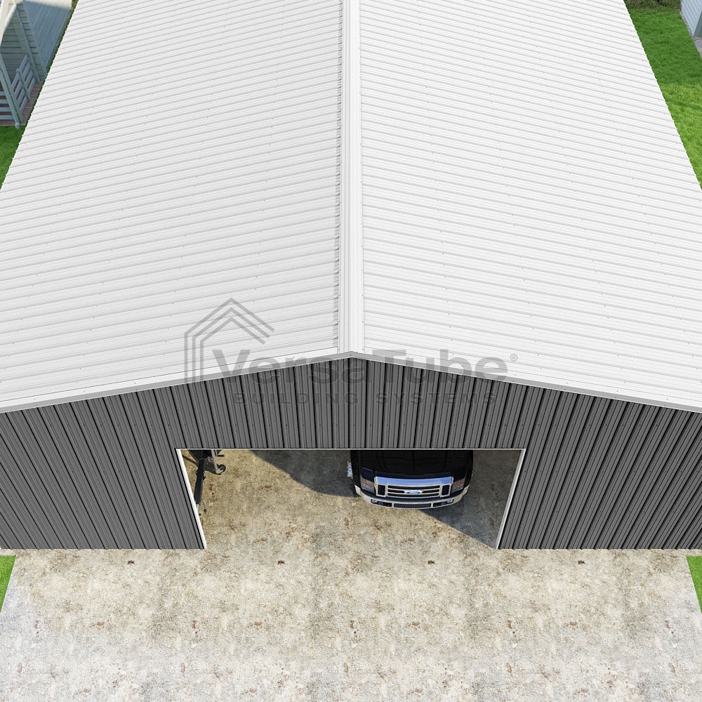 Summit Series DIY garage kit features vertical sheet metal roof and siding panels for a consistent look.