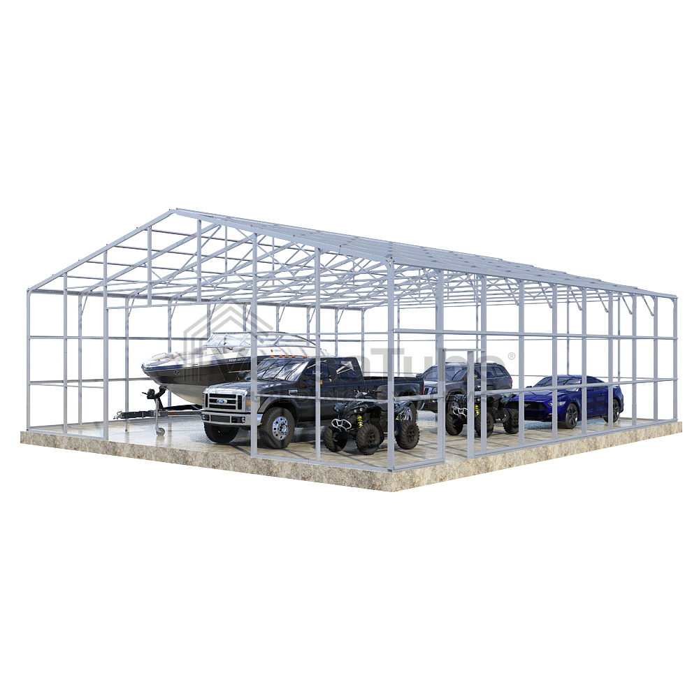 Ground anchoring requires VersaTube rebar anchors centered in post holes and backfilled with concrete. Anchoring to a concrete slab or concrete footing requires concrete wedge anchor bolts. Anchors are provided with each building and carport kit. You will make your selection prior to checkout.