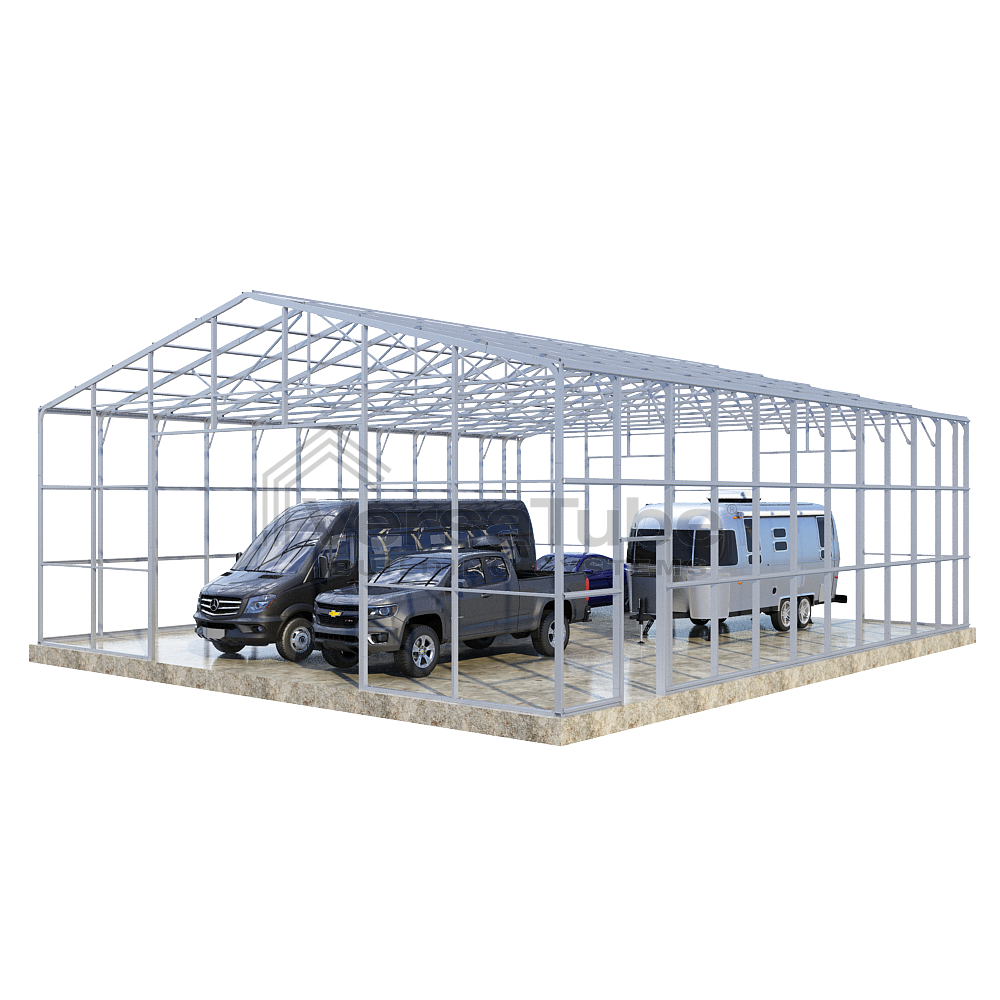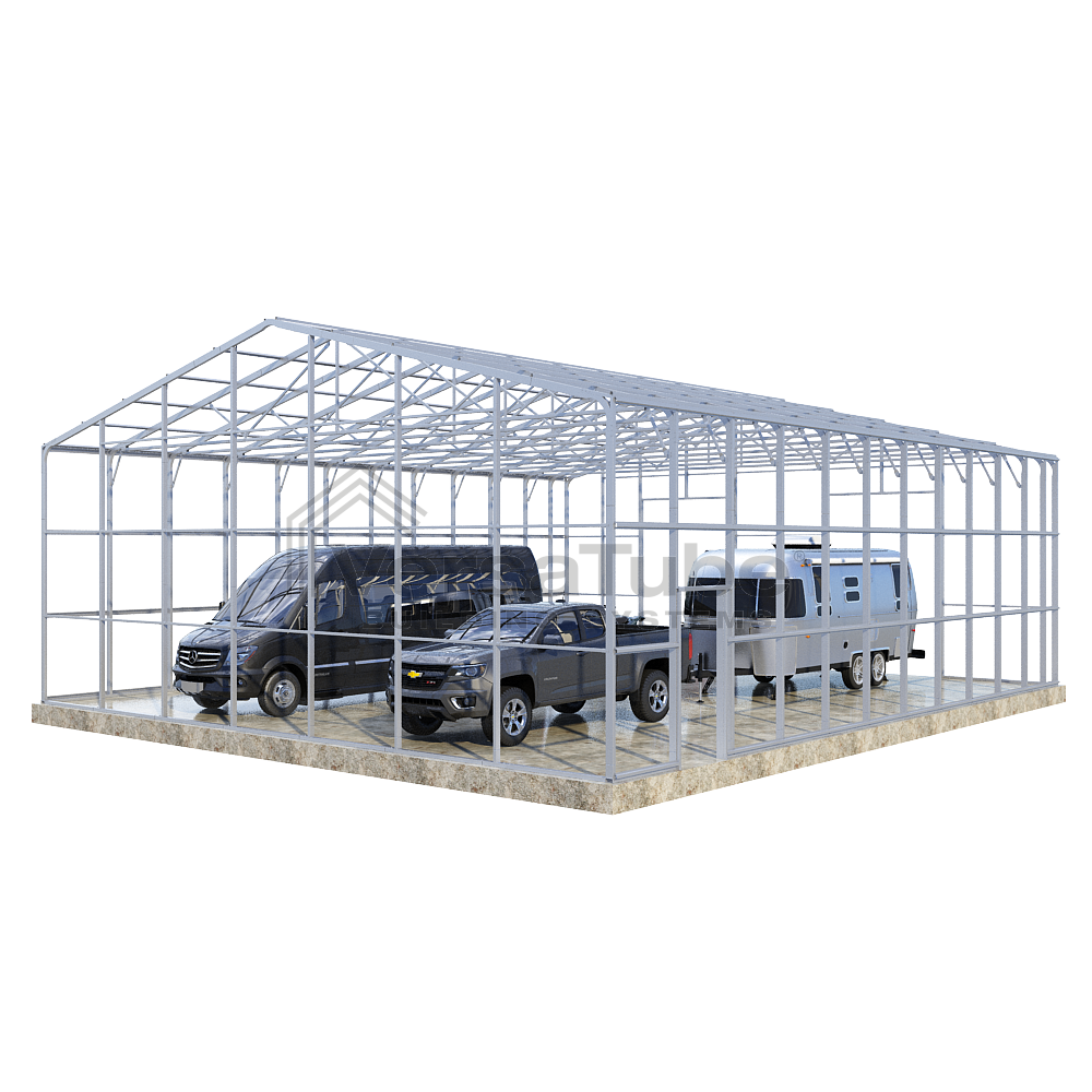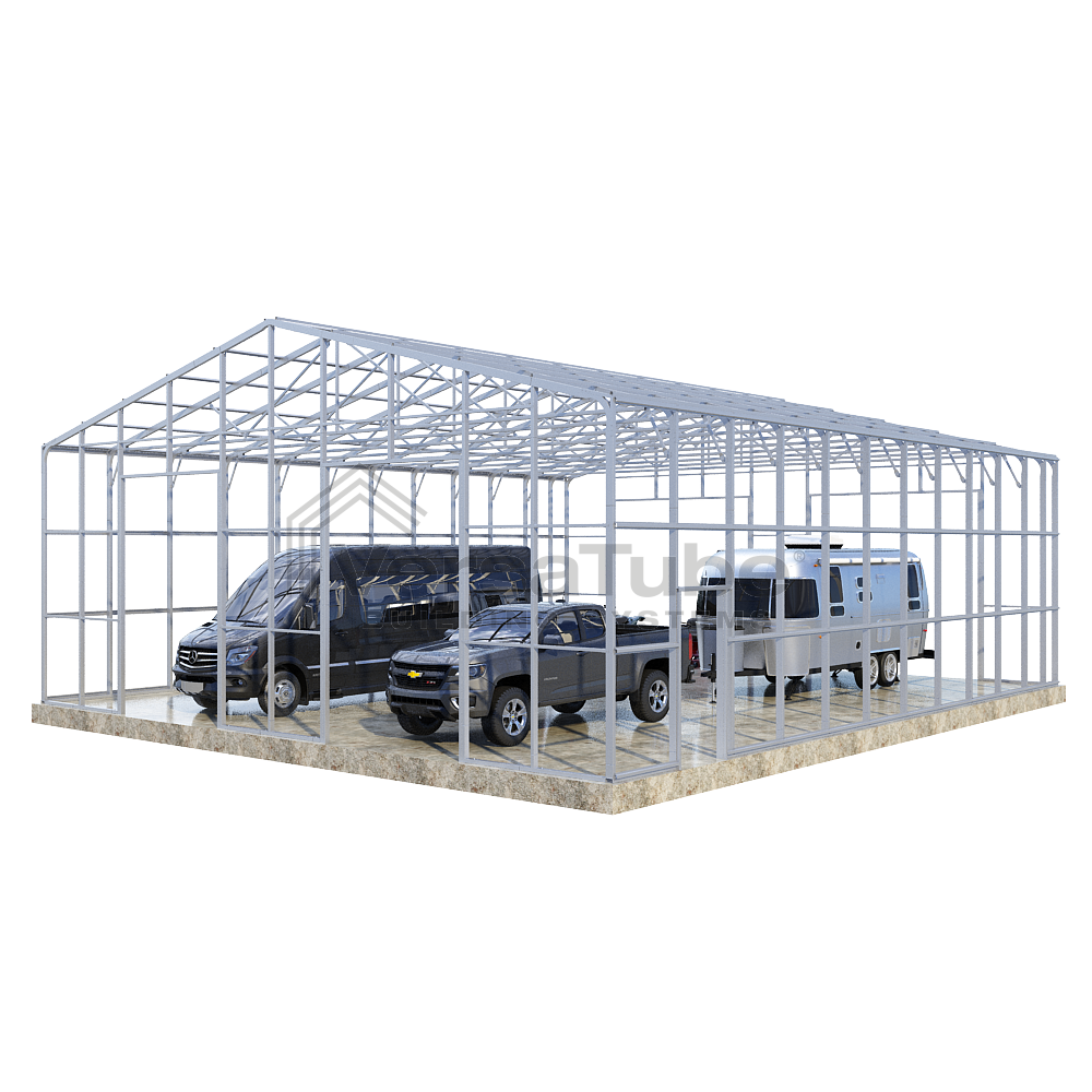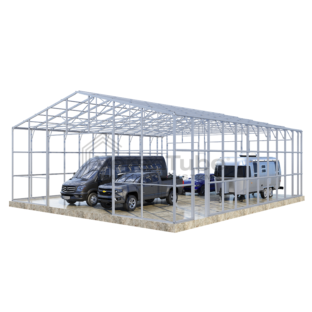 Ground anchoring requires VersaTube rebar anchors centered in post holes and backfilled with concrete. Anchoring to a concrete slab or concrete footing requires concrete wedge anchor bolts. Anchors are provided with each building and carport kit. You will make your selection prior to checkout.