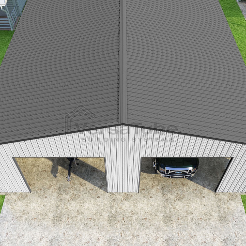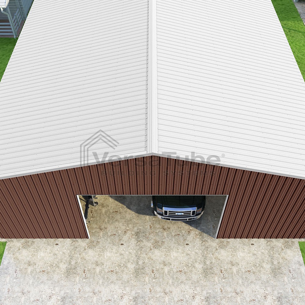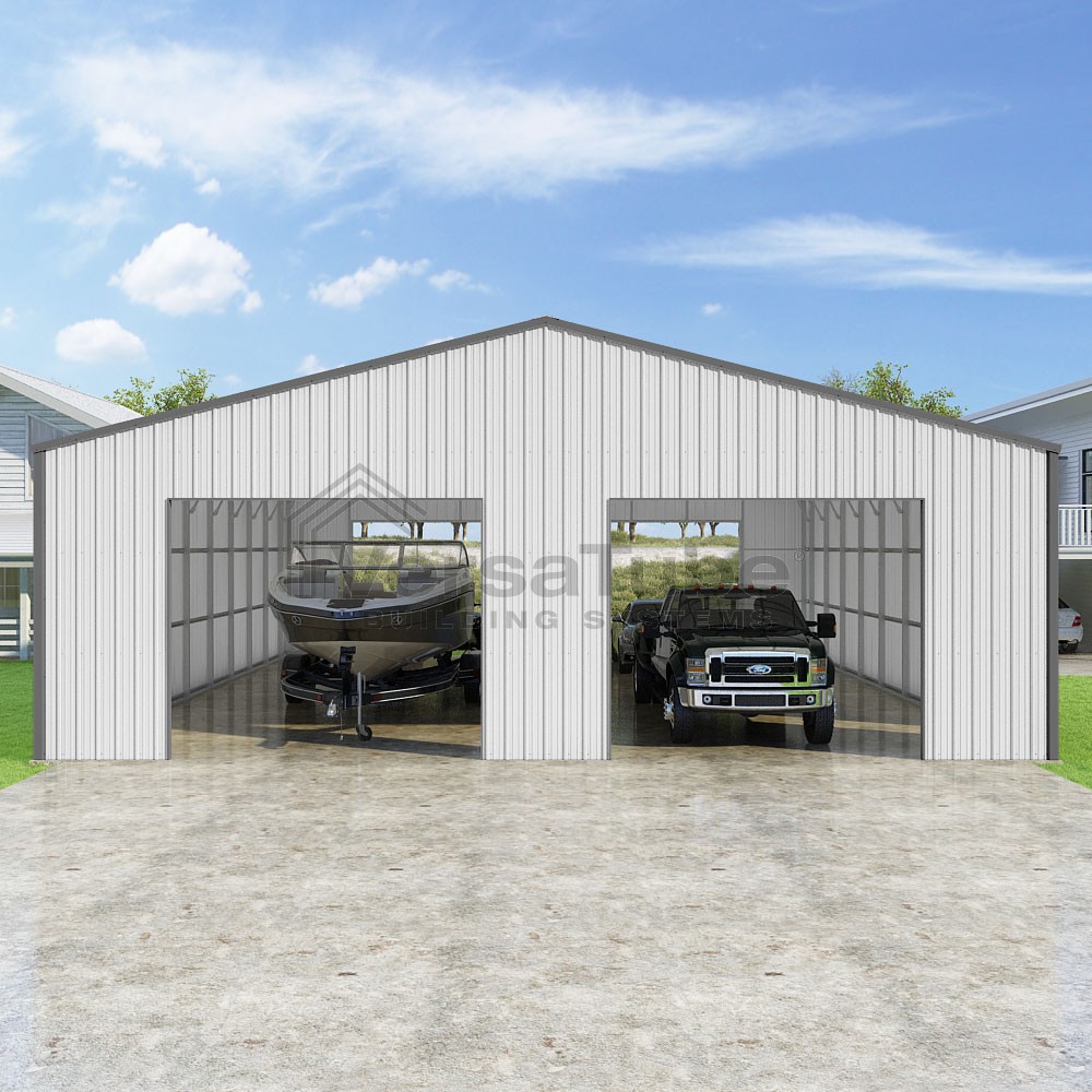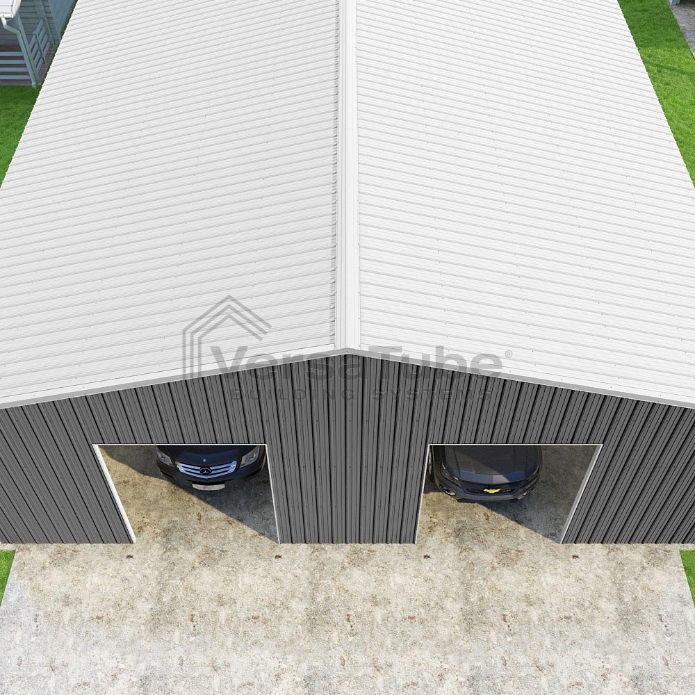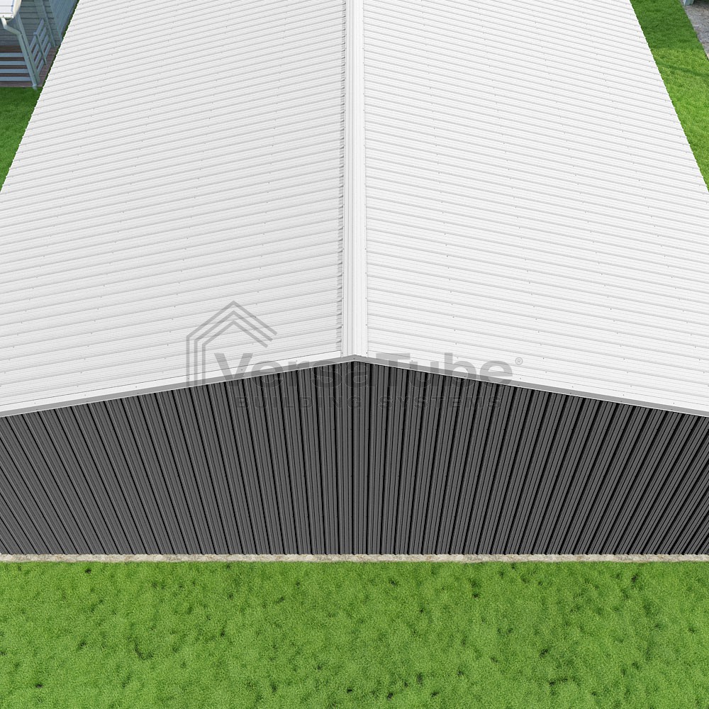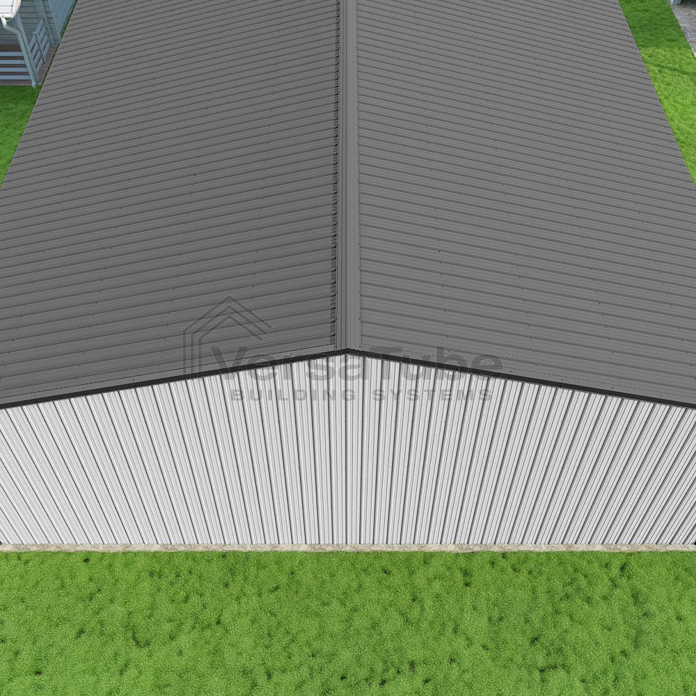 Summit Series DIY garage kit features vertical sheet metal roof and siding panels for a consistent look.
