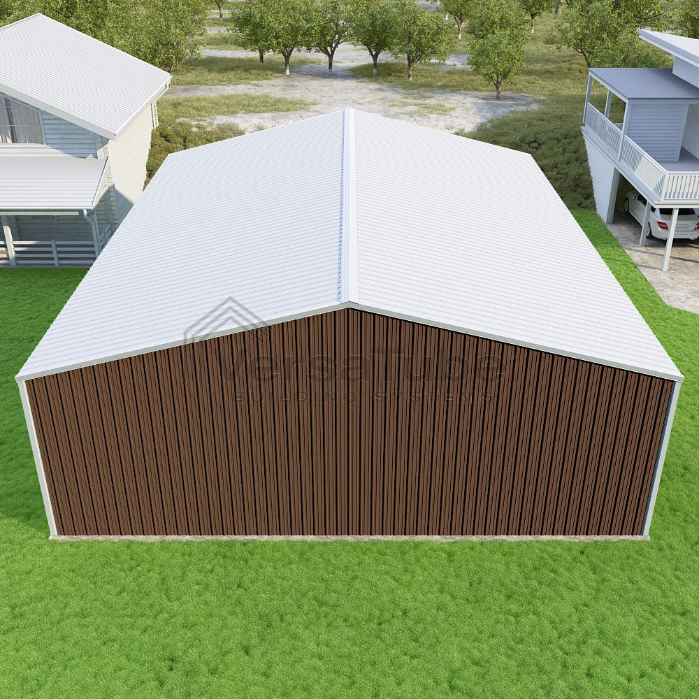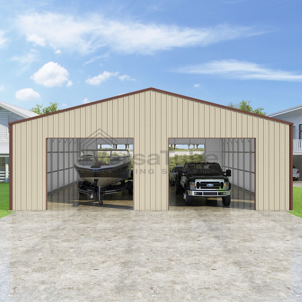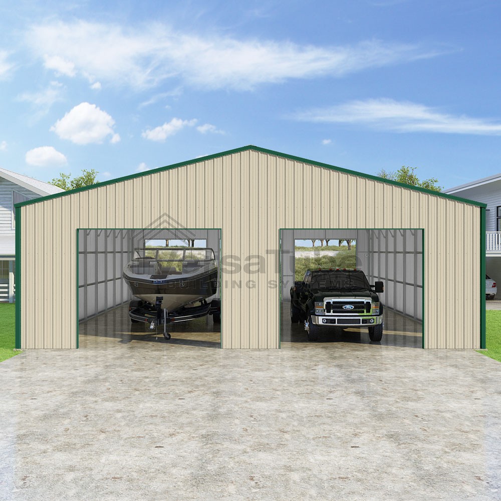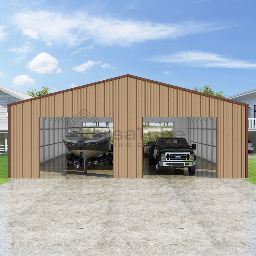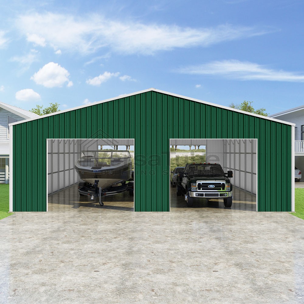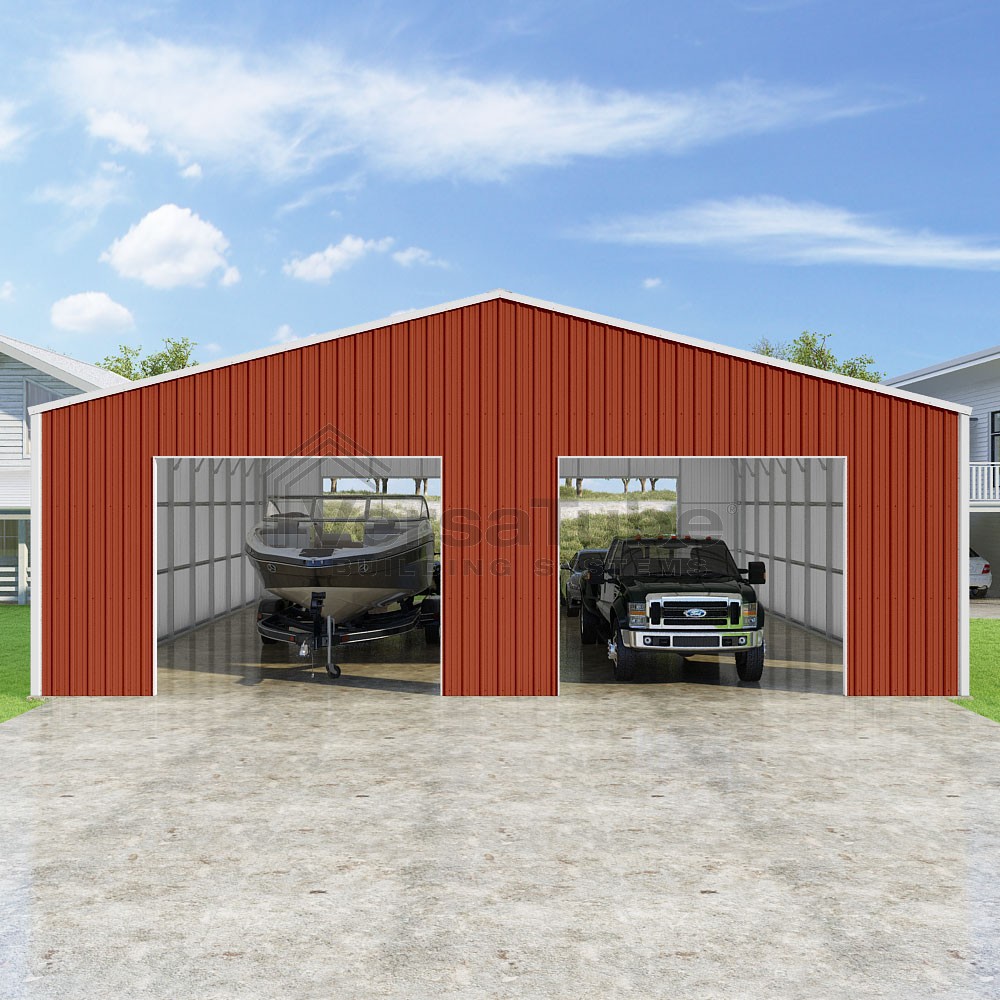 Summit Series DIY garage kit features vertical sheet metal roof and siding panels for a consistent look.