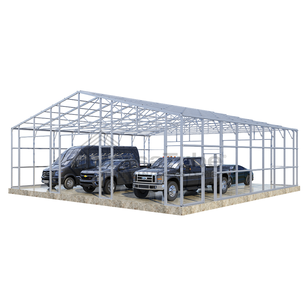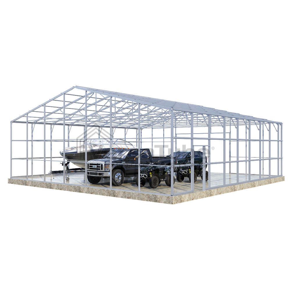 Ground anchoring requires VersaTube rebar anchors centered in post holes and backfilled with concrete. Anchoring to a concrete slab or concrete footing requires concrete wedge anchor bolts. Anchors are provided with each building and carport kit. You will make your selection prior to checkout.
