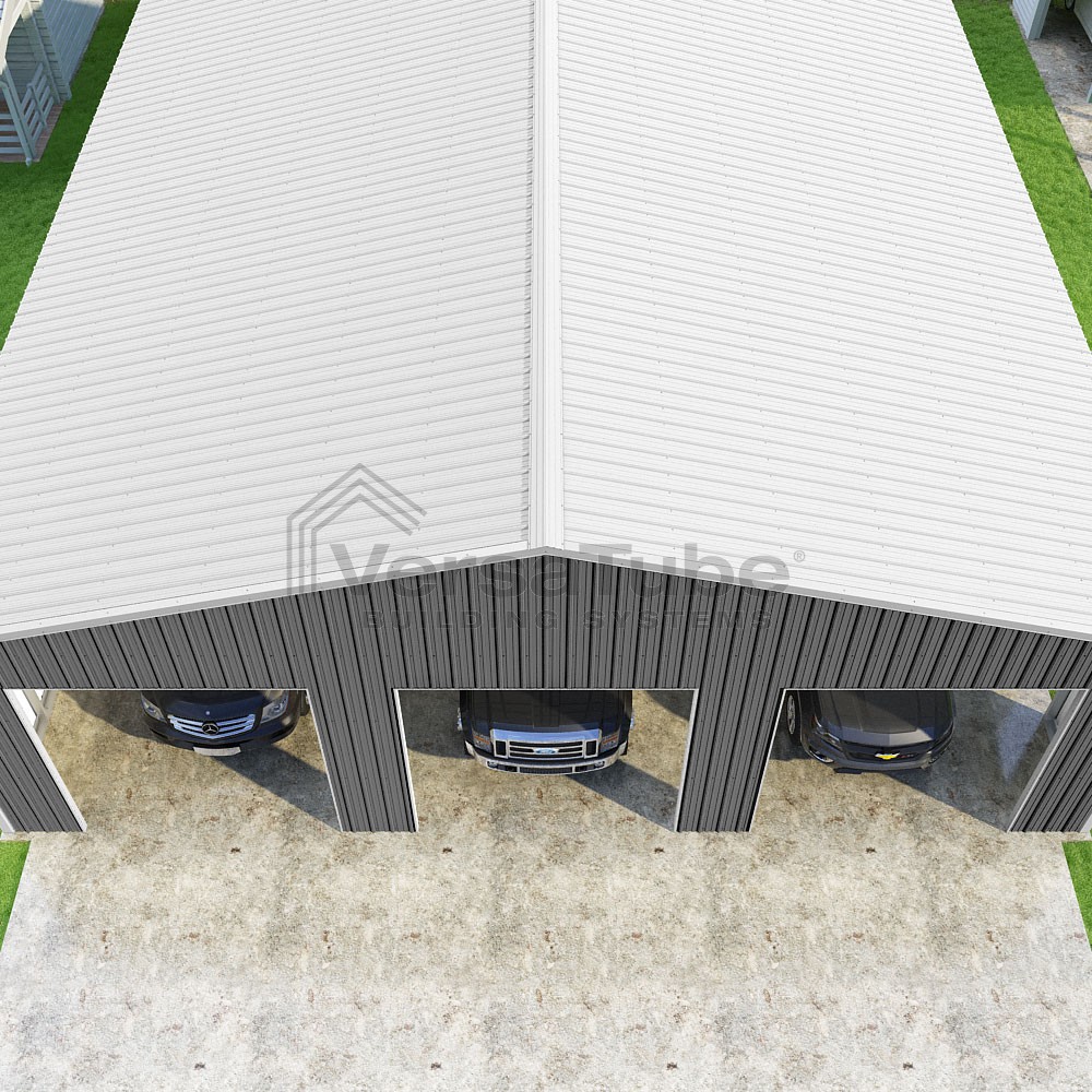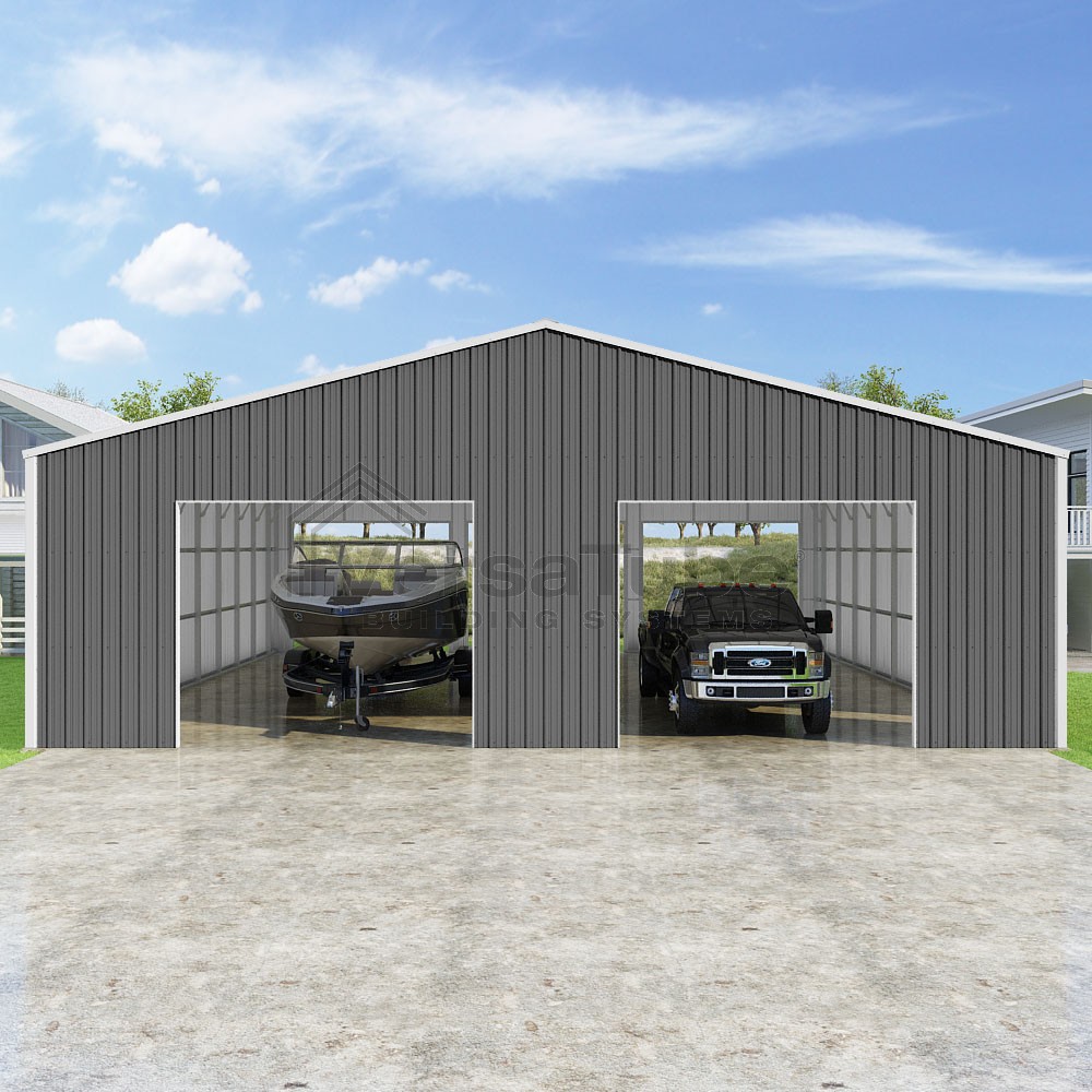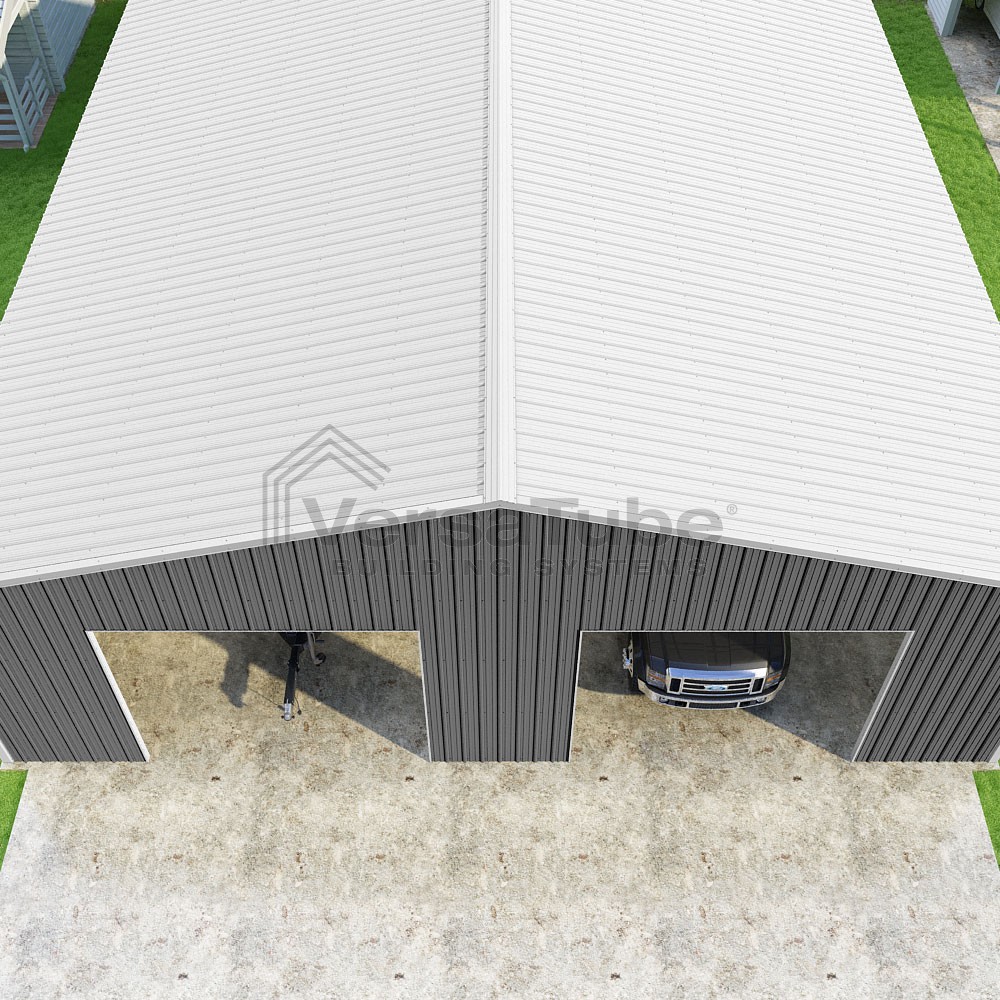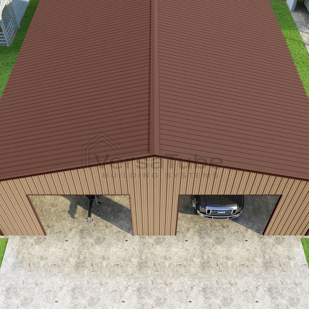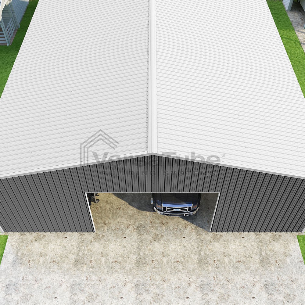 Summit Series DIY garage kit features vertical sheet metal roof and siding panels for a consistent look.