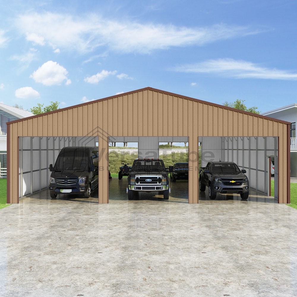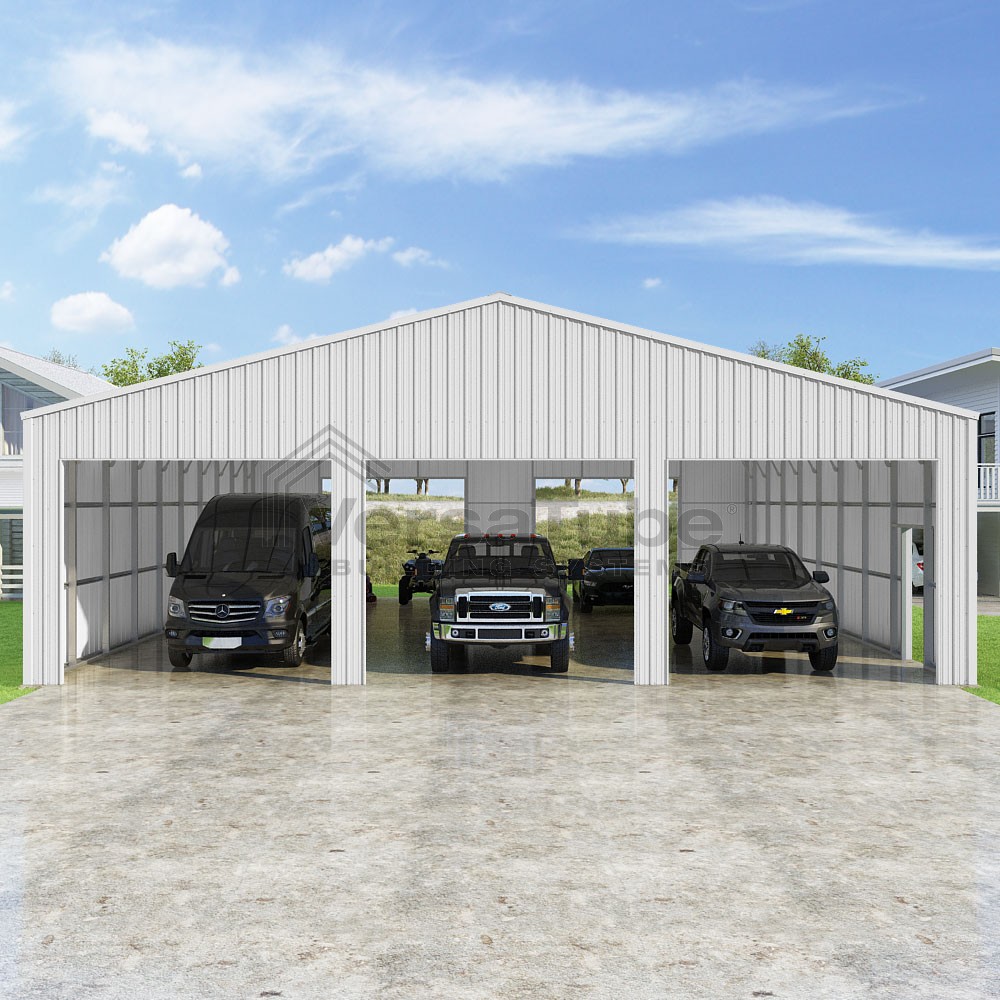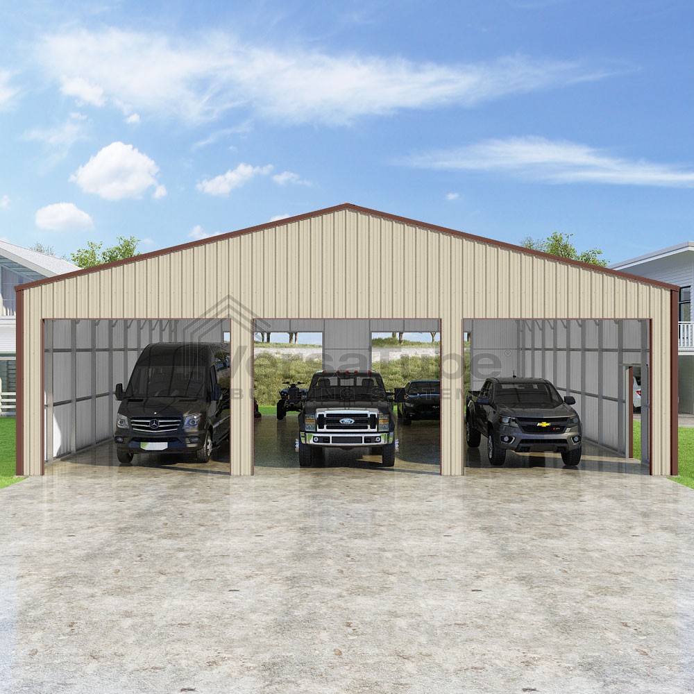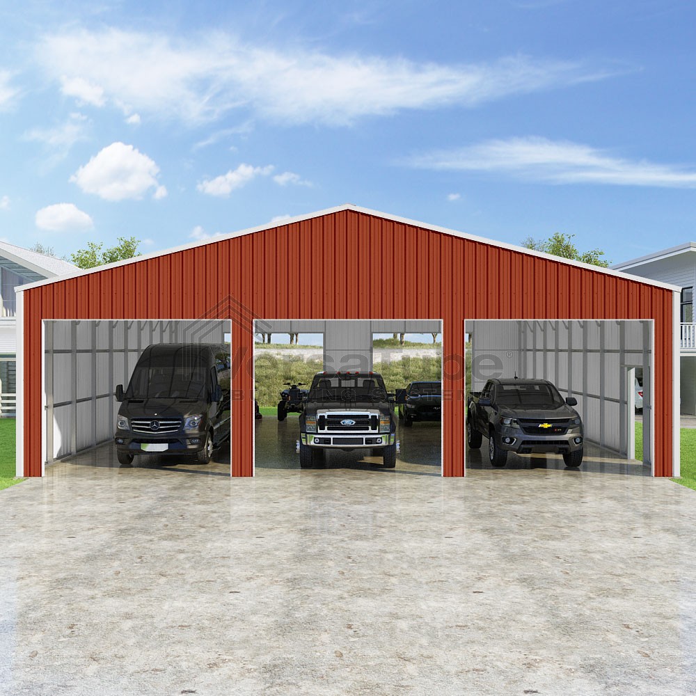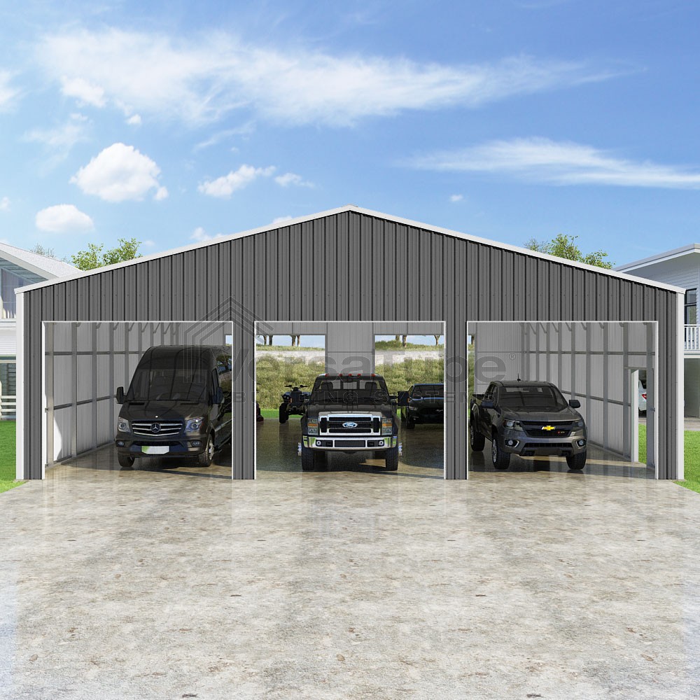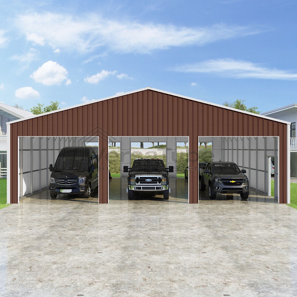 Summit Series DIY garage kit features vertical sheet metal roof and siding panels for a consistent look.