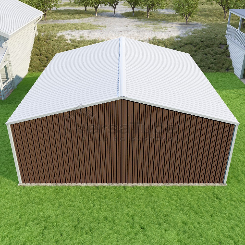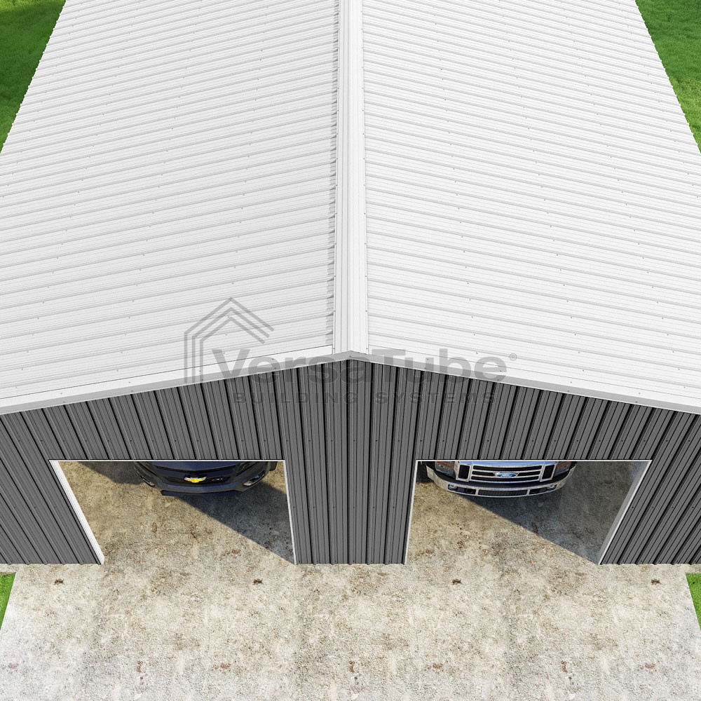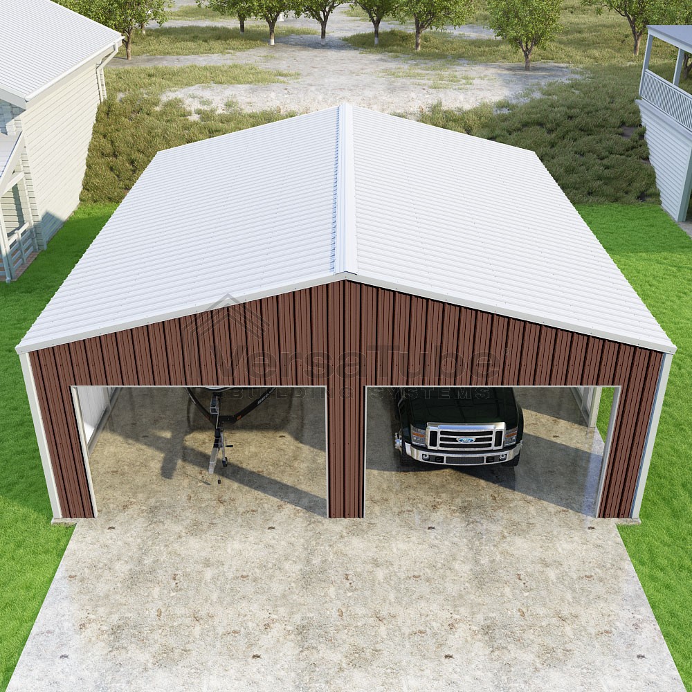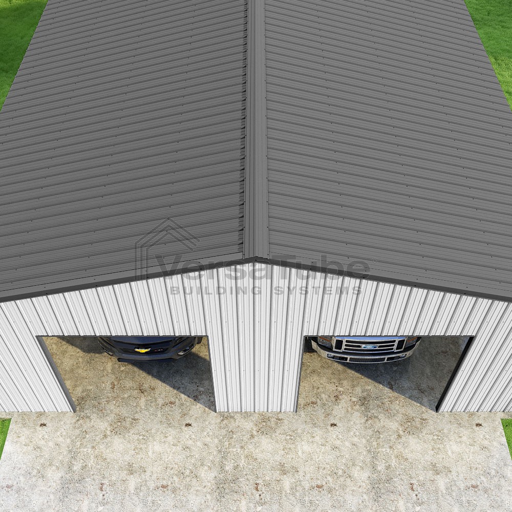 Summit Series DIY garage kit features vertical sheet metal roof and siding panels for a consistent look.