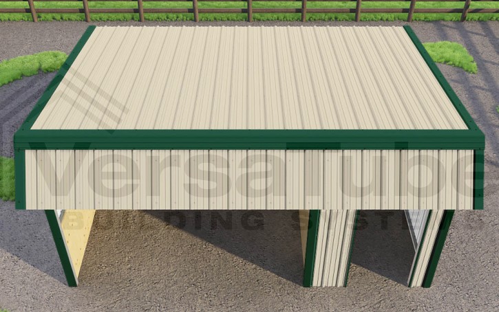 Single Slope design includes a 6-ft. wide x 12-ft. deep storage room with walk door frame, along with roof purlins and side girts for all-around vertical sheet metal application, which allows greater snow, rain and debris run-off. And in-the-field assembly time is drastically reduced with our pre-cut frame components and patented Slip-Fit frame connections.