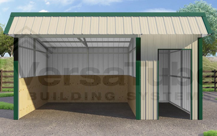 Single Slope DIY loafing shed kit provides premium shelter protection for your animals and livestock by combining the desired strength and durability of steel with the added resistance to fire, termites, weathering and rot – and it comes with a built-in storage room.